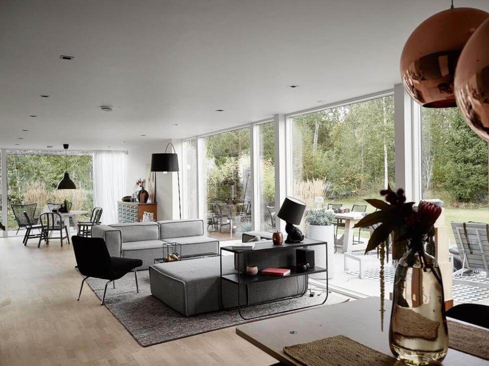 Rikligt med fönster i det öppna vardagsrummet. Foto: Fredric Boukari