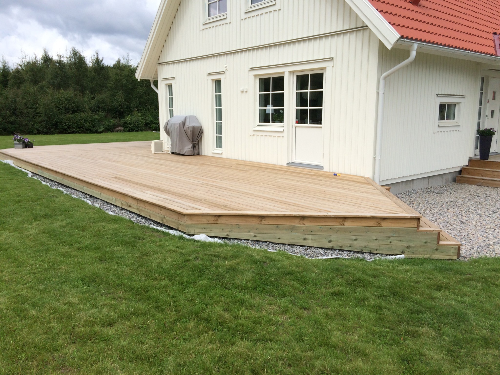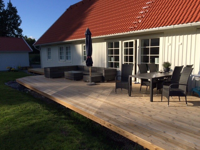 Hej. Jag och min sambo var helt överens om att vi ville inte ha stora höjdskillnader mellan golvet inne och altanen.