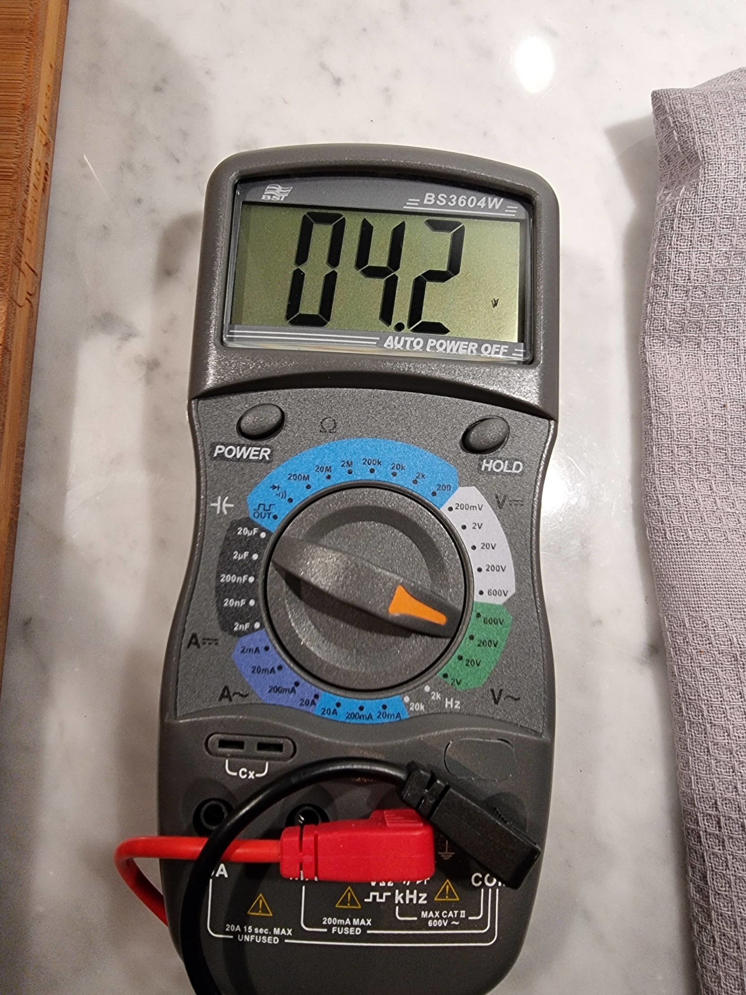 Prova att mäta DC. En del primitiva mätinstrument visar helt galet om man mäter DC när det är inställt på AC. De förutsätter sinusformad spänning och ger helt felaktiga värden om det inte är det.Dr. M skrev: