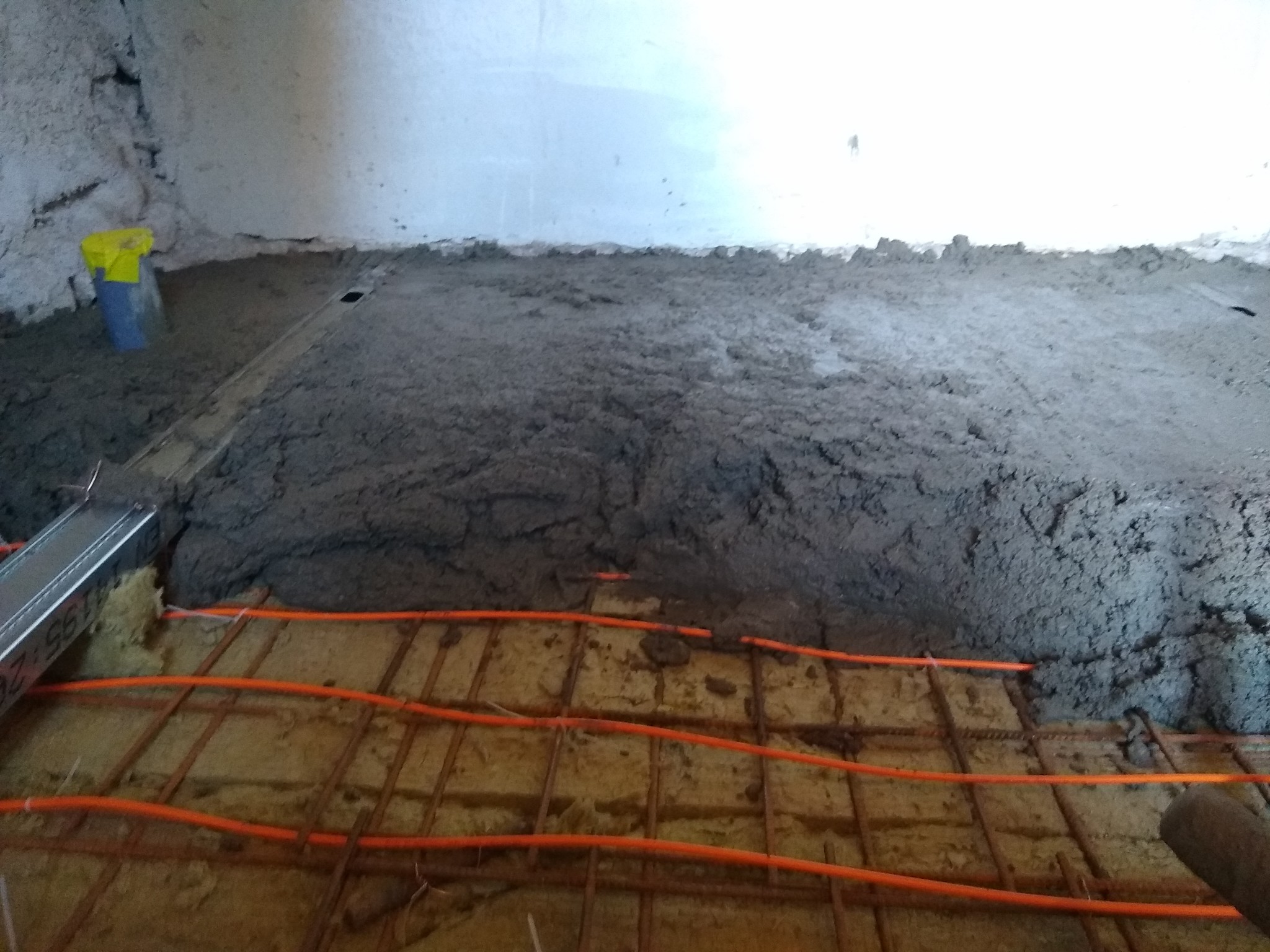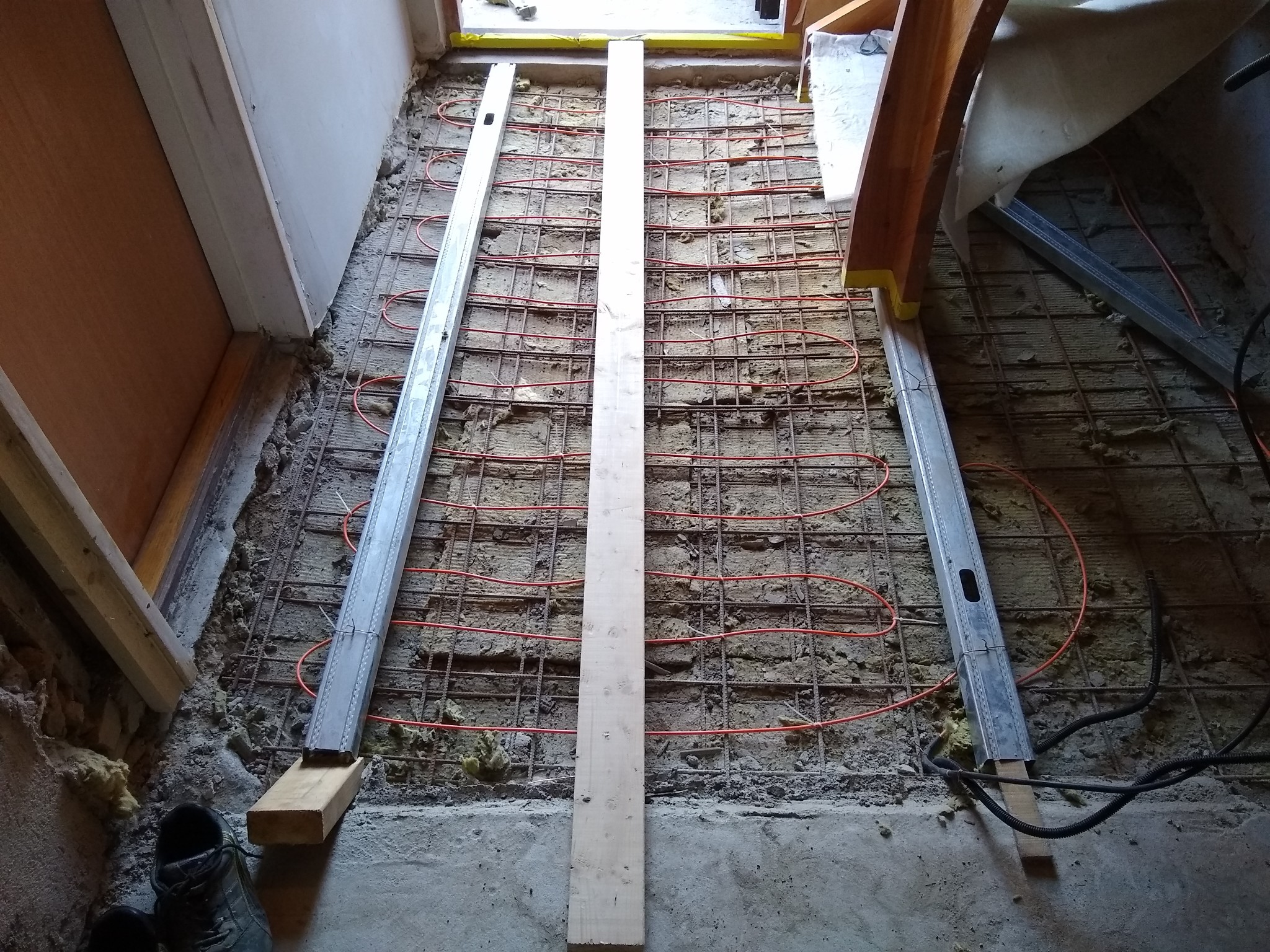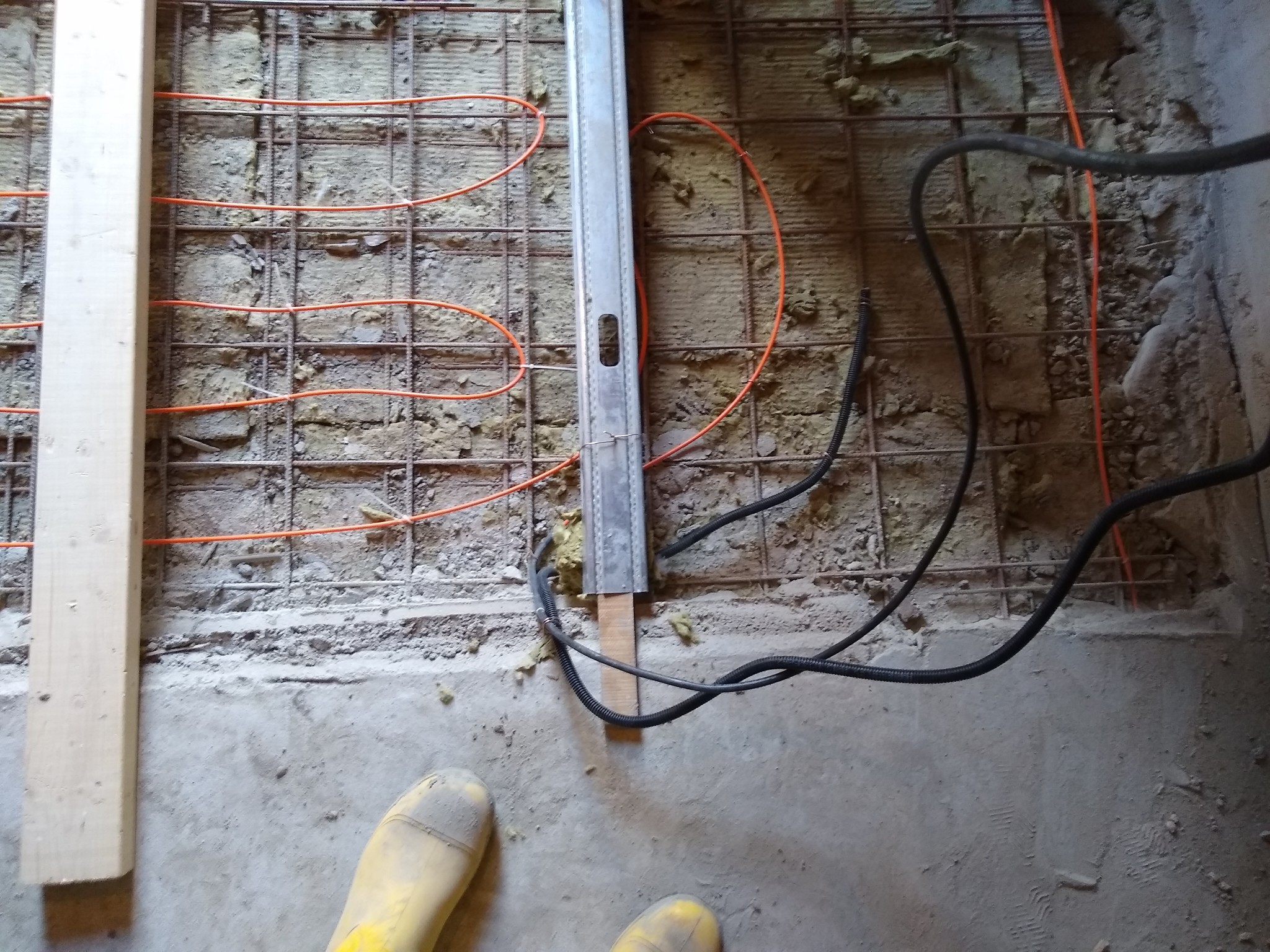 Elgolvärme och en delning där nya väggen ska vara gör det lite lättare att gjuta detta rummet.
