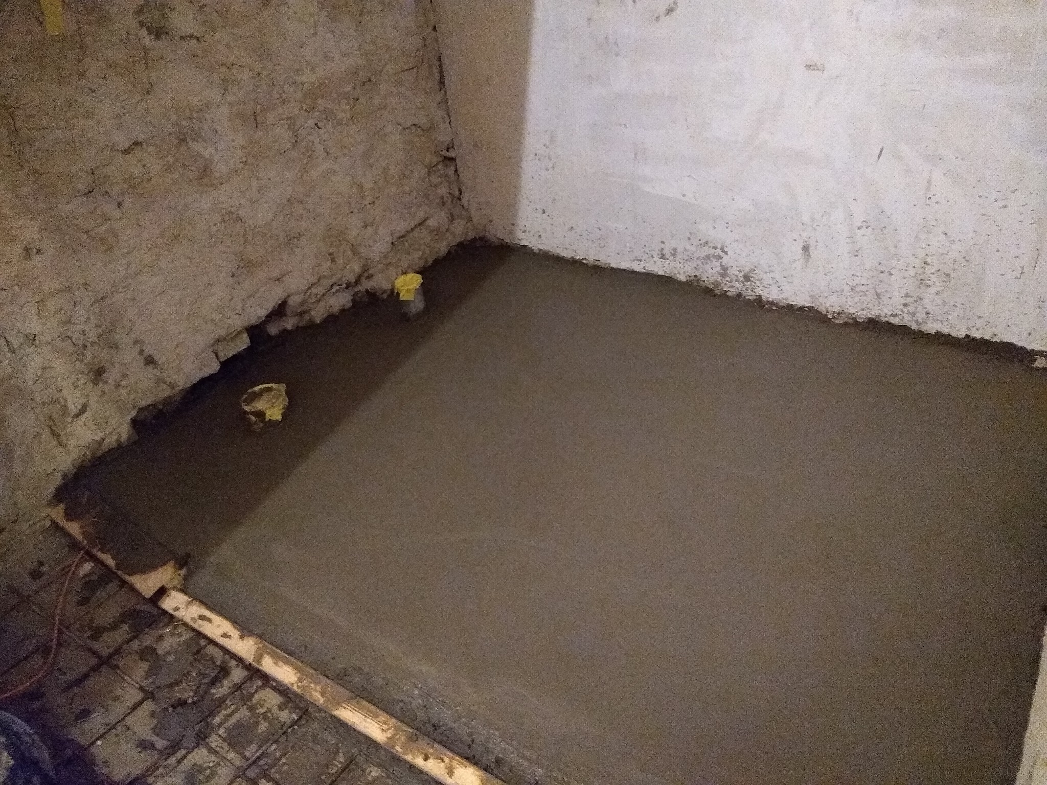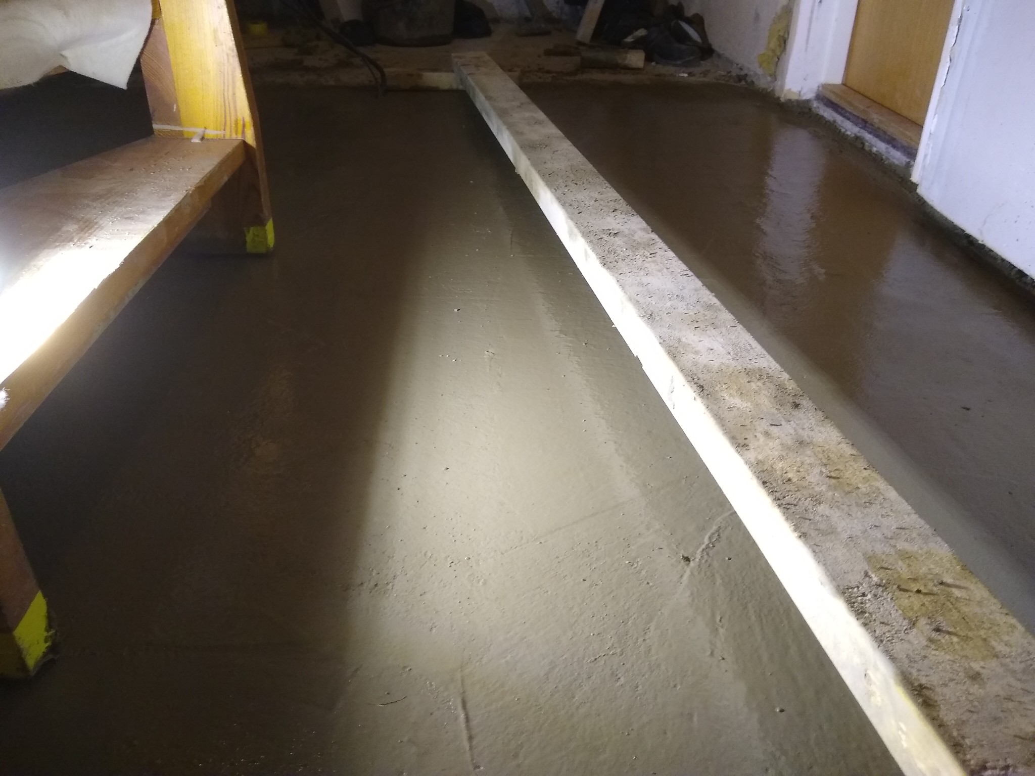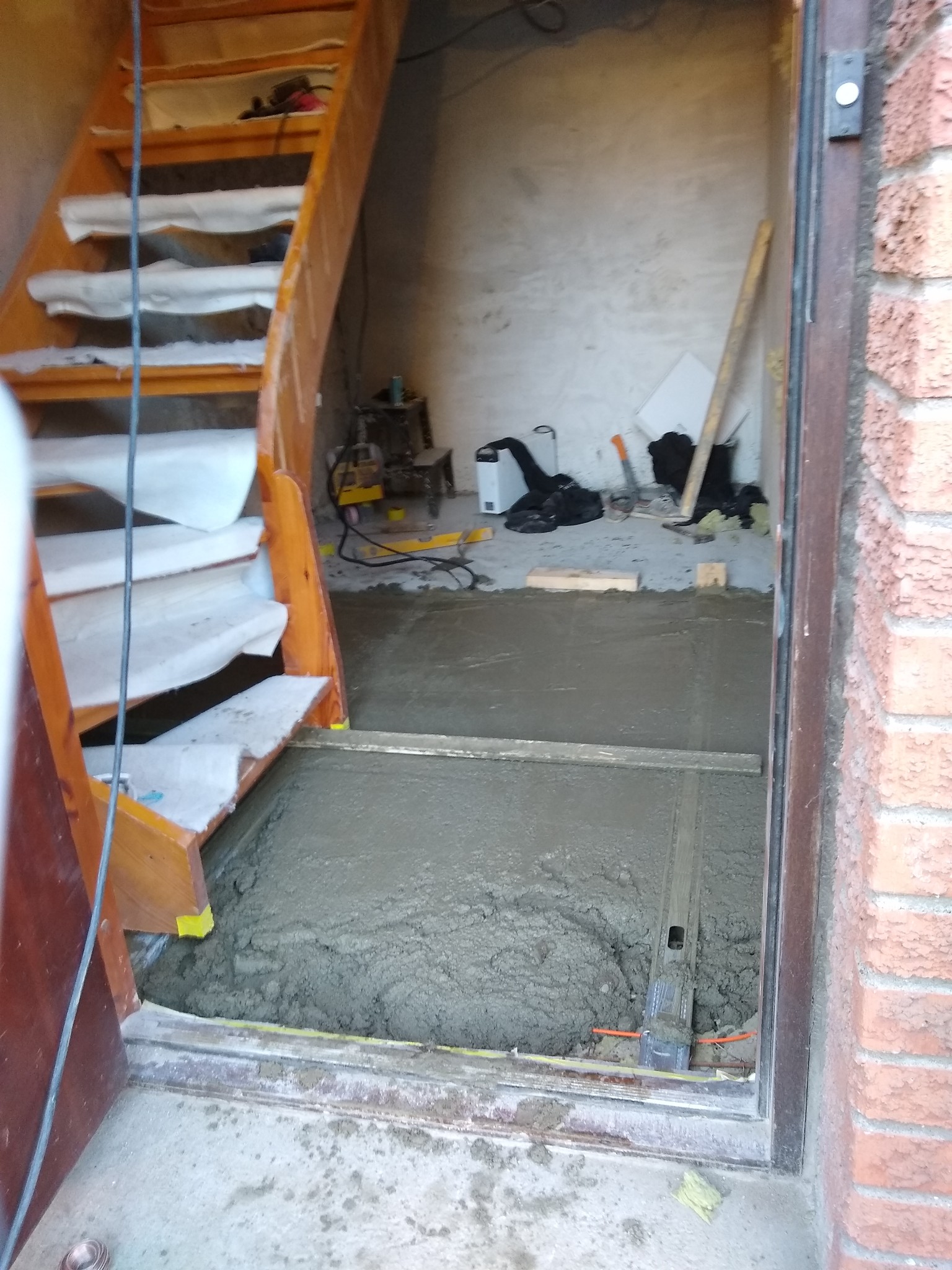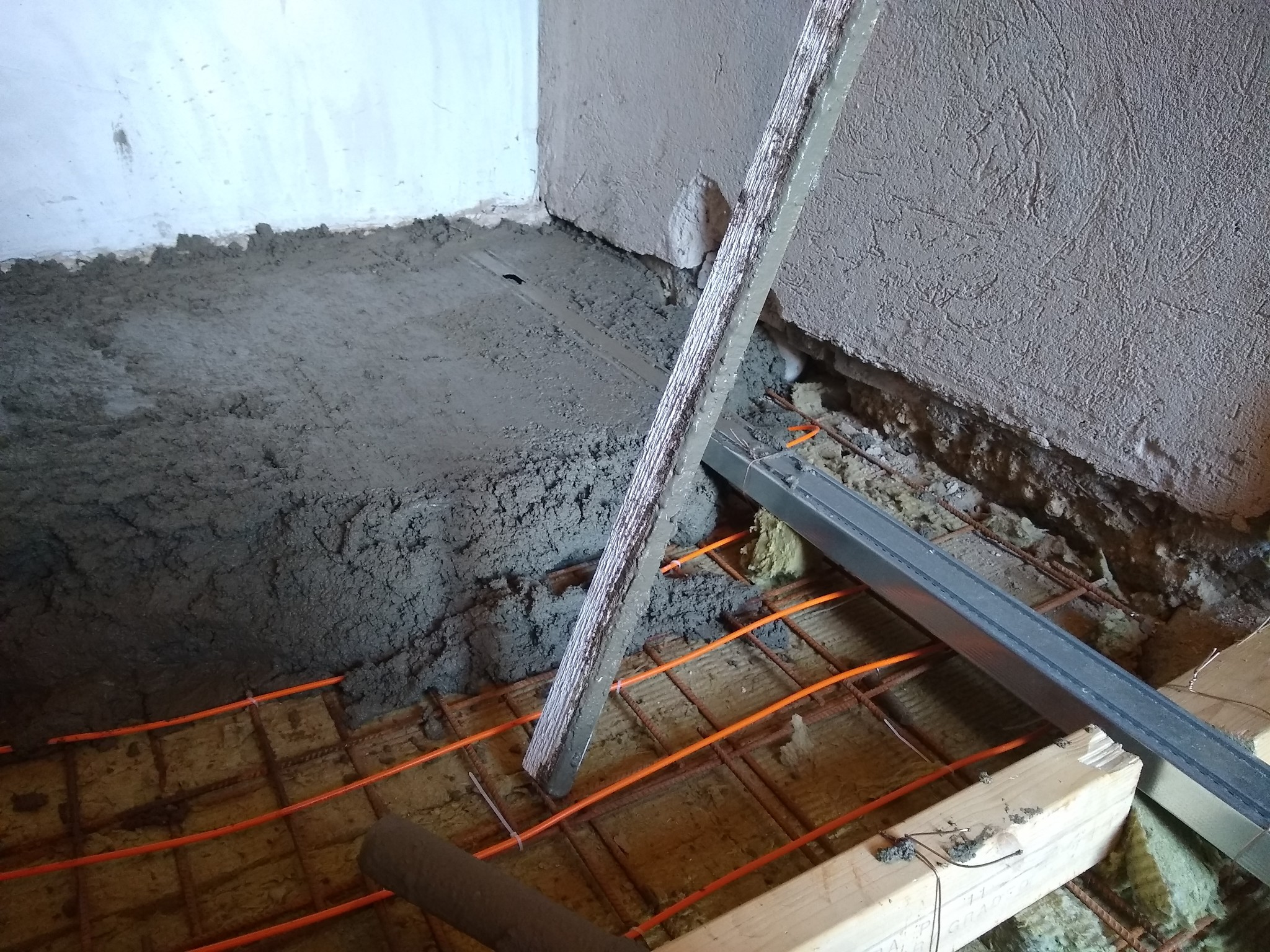 Elgolvärme och en delning där nya väggen ska vara gör det lite lättare att gjuta detta rummet.