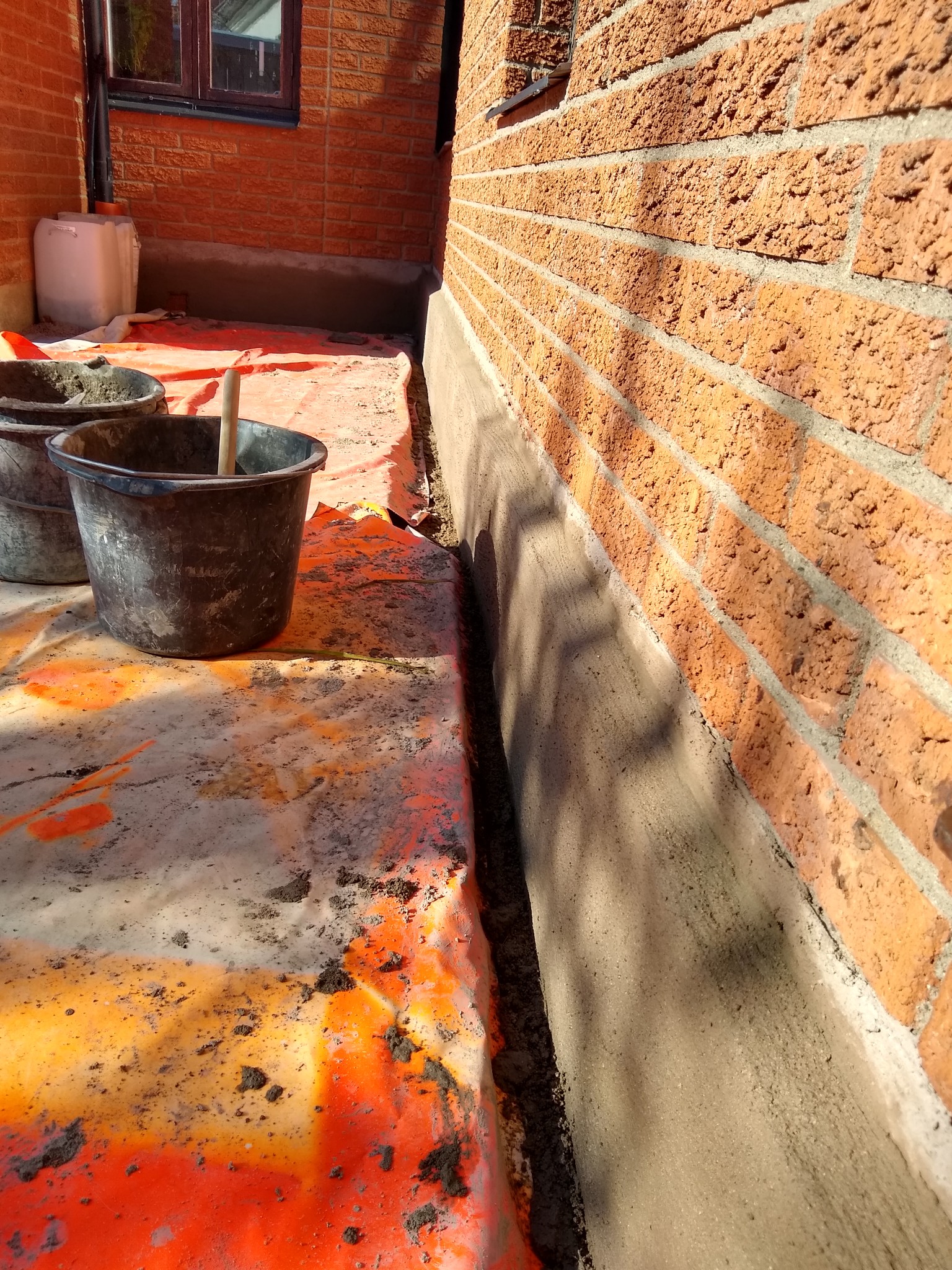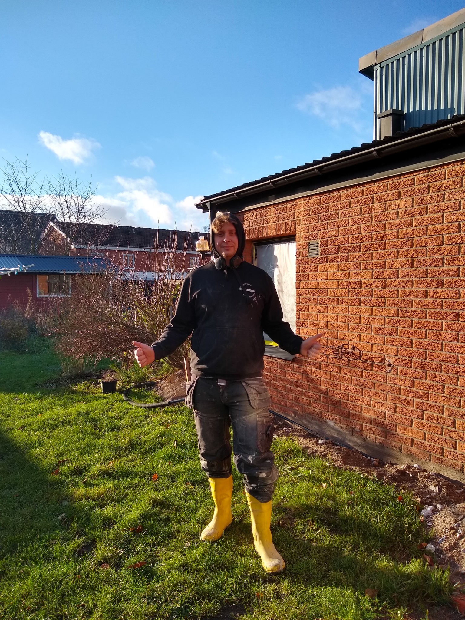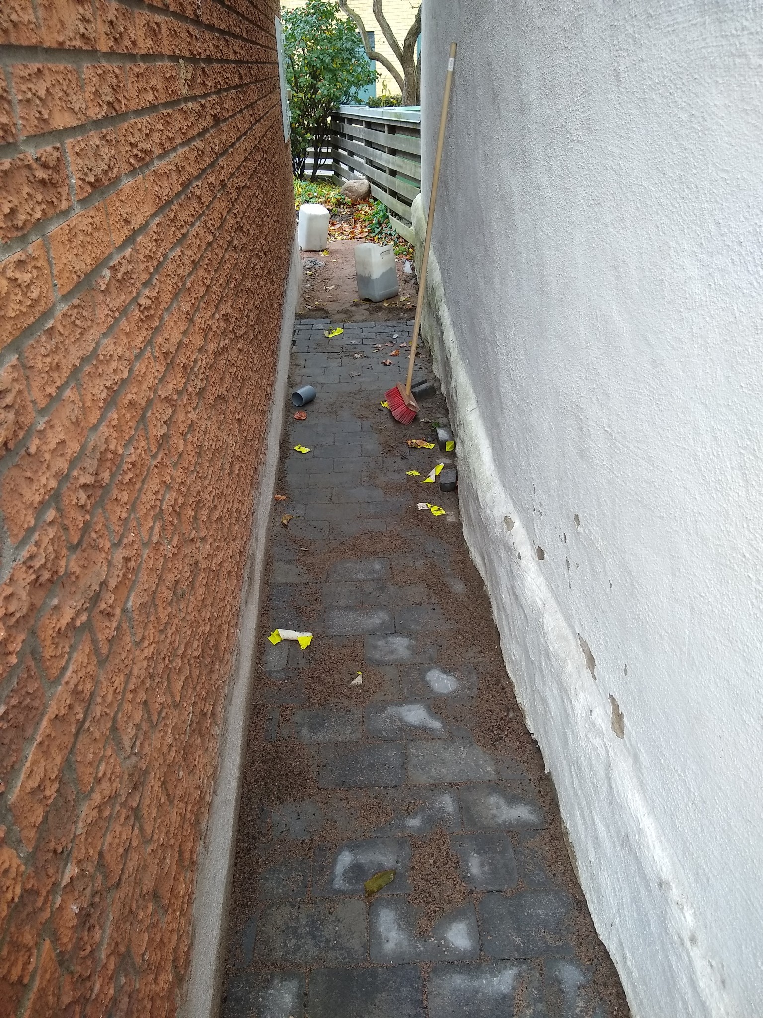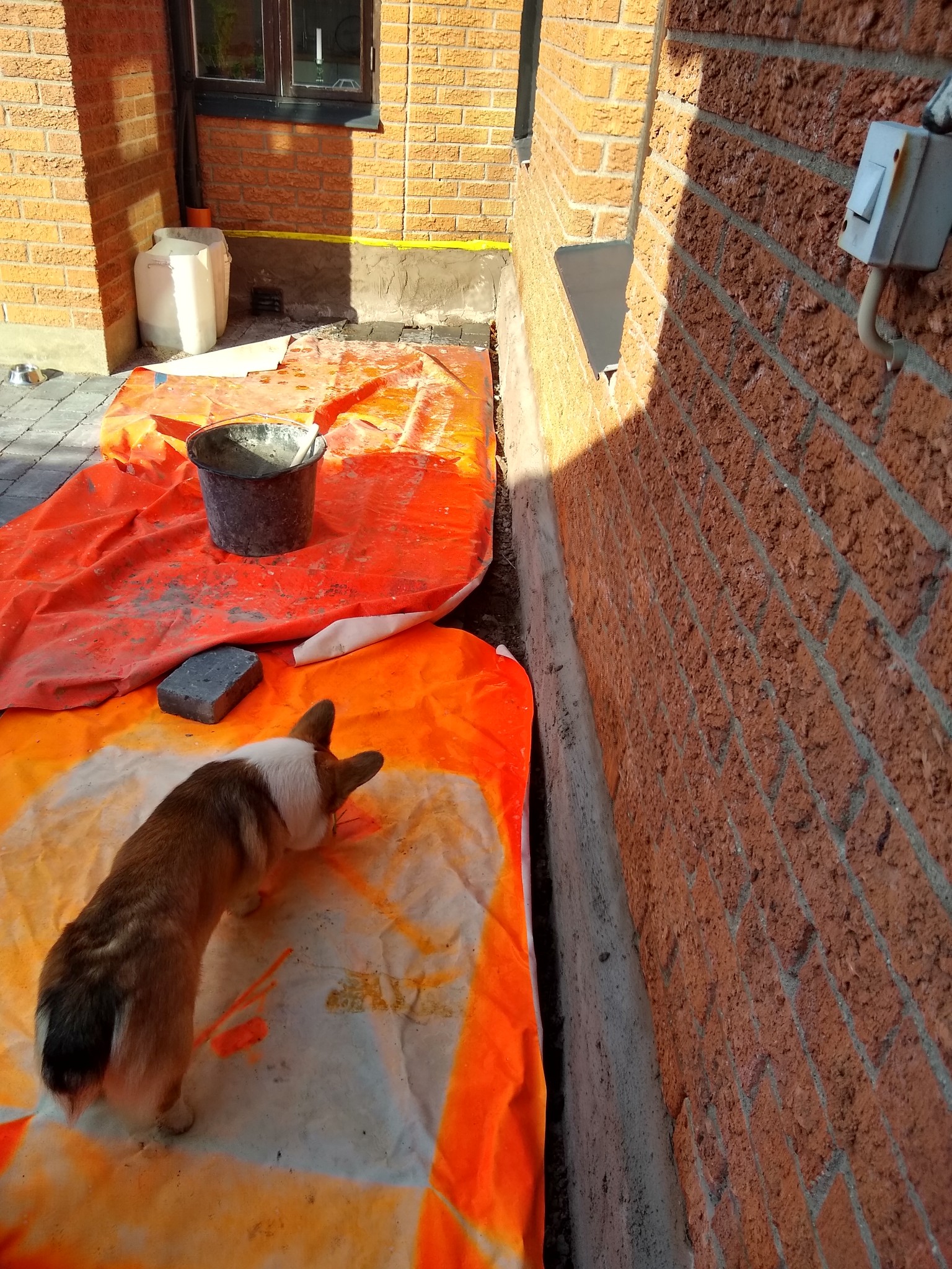 Slav från muraren, så fick rätta upp lite innan det var dags att måla.