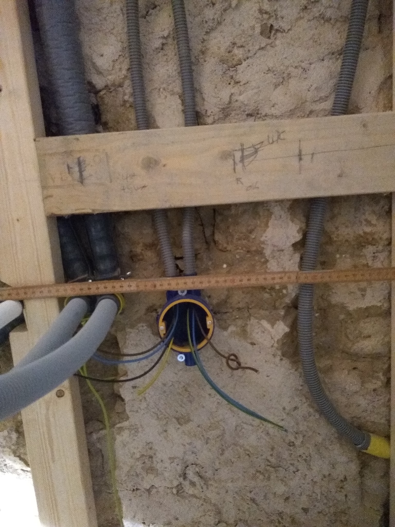 Skulle slå ett spett genom ett hål för att kunna mata kabel men råkade linda in fiberkablen i spettet och det kostade 4700:- att skarva och blåsa in ny fiber, tur man hade gjort all matning själv ordentligt så det var lätt för hantverkarna att fixa mina misstag.