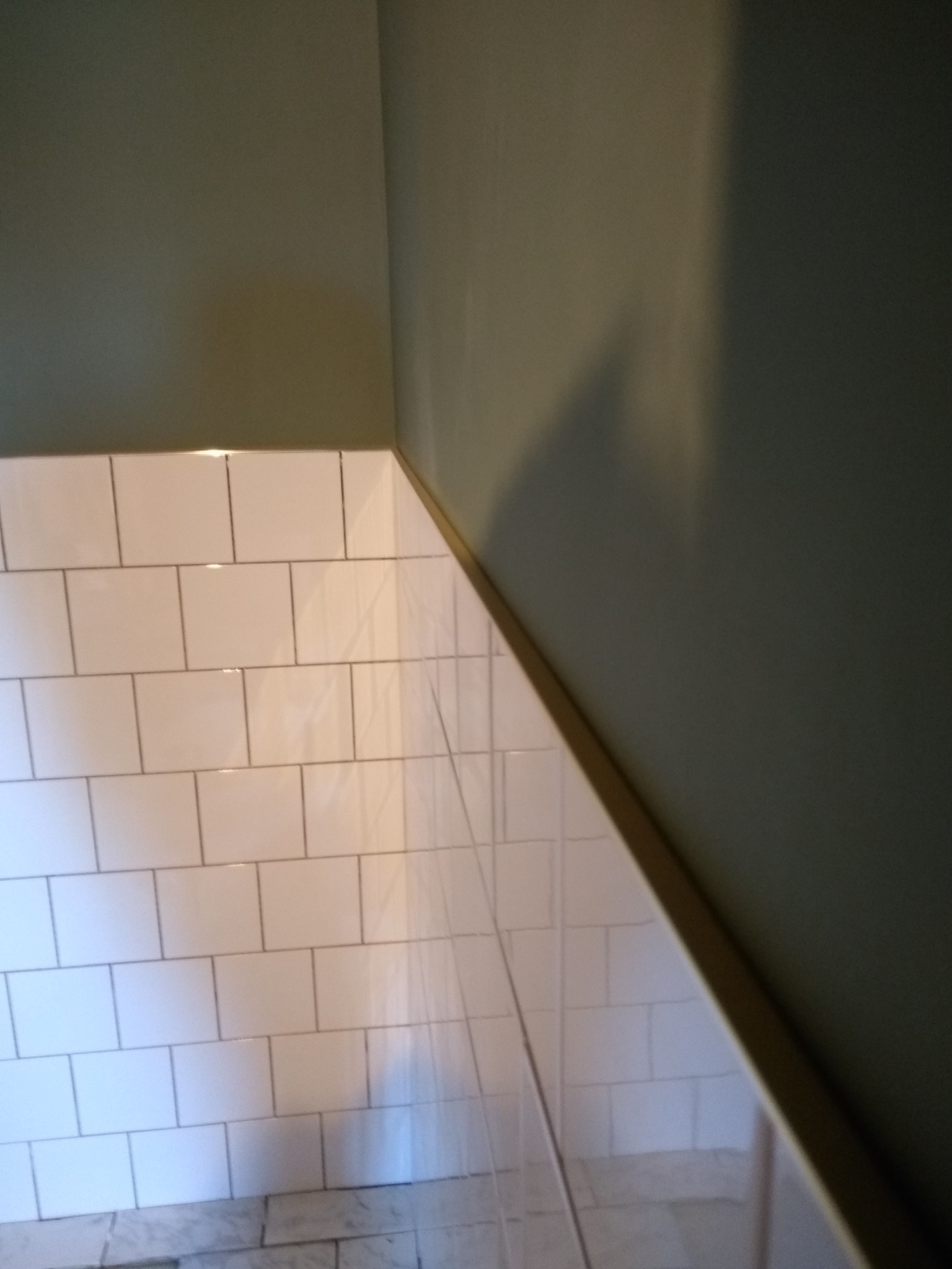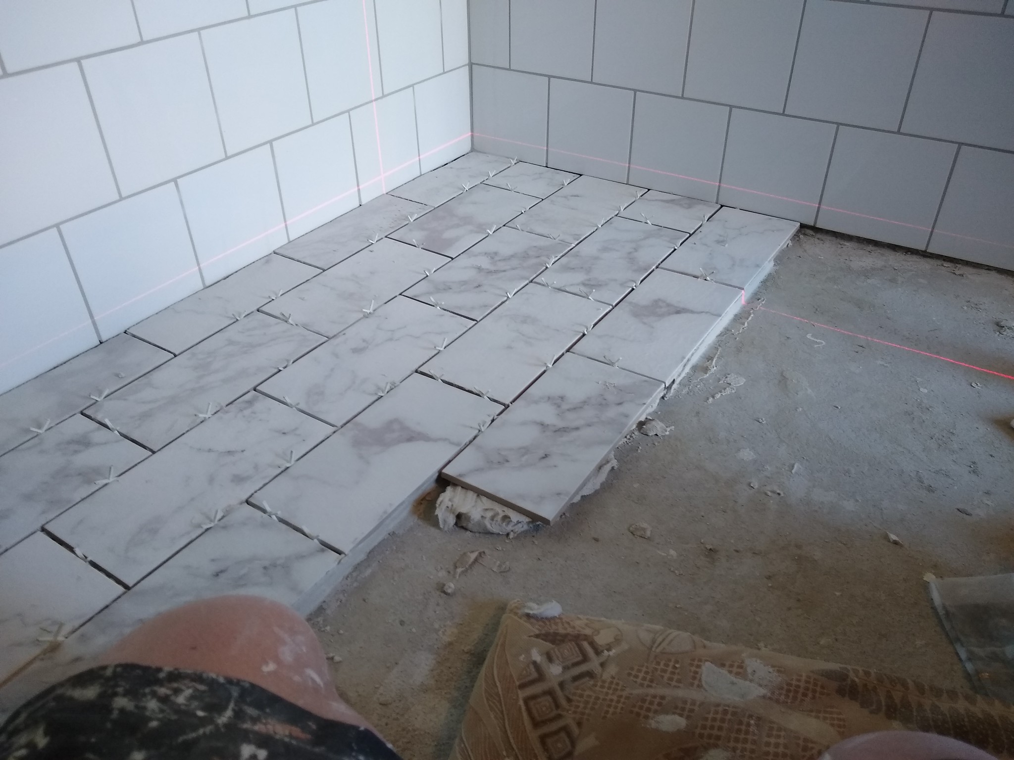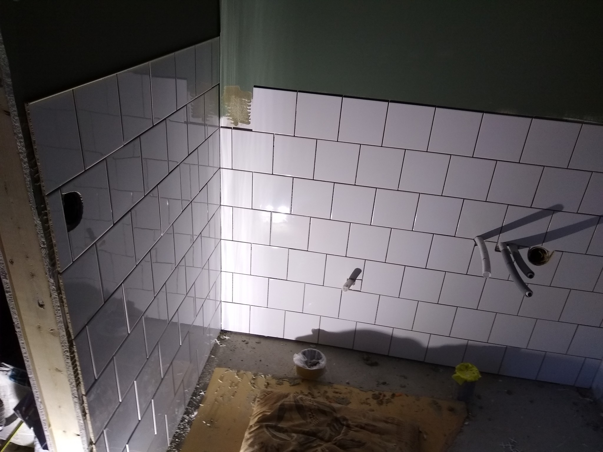 Det ska vara halvstenförband så då måste man tänk en extra gång innan man sätter första kaklen.