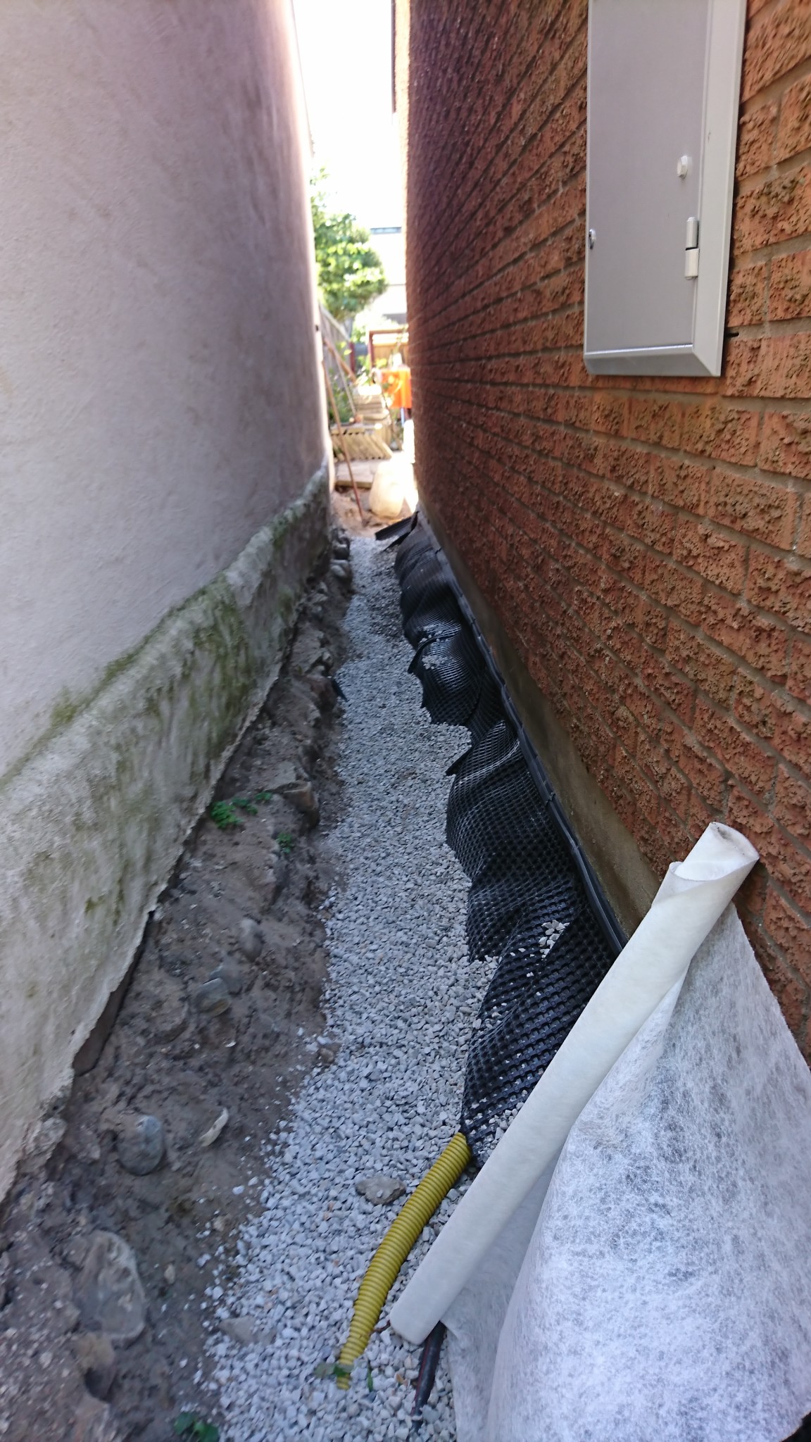 Dags att få in dränering och platonmattan på plats med markduken. Jag har tyvärr inte så mycket bilder på hela hålet