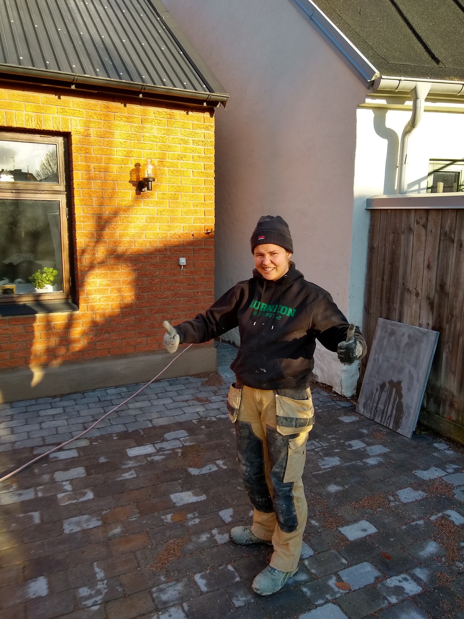 Och nu är sambon glad att det är klart så här långt. Har dock en 25 m2 kvar att lägga samt anlägga en parkering till bilen på framsidan.