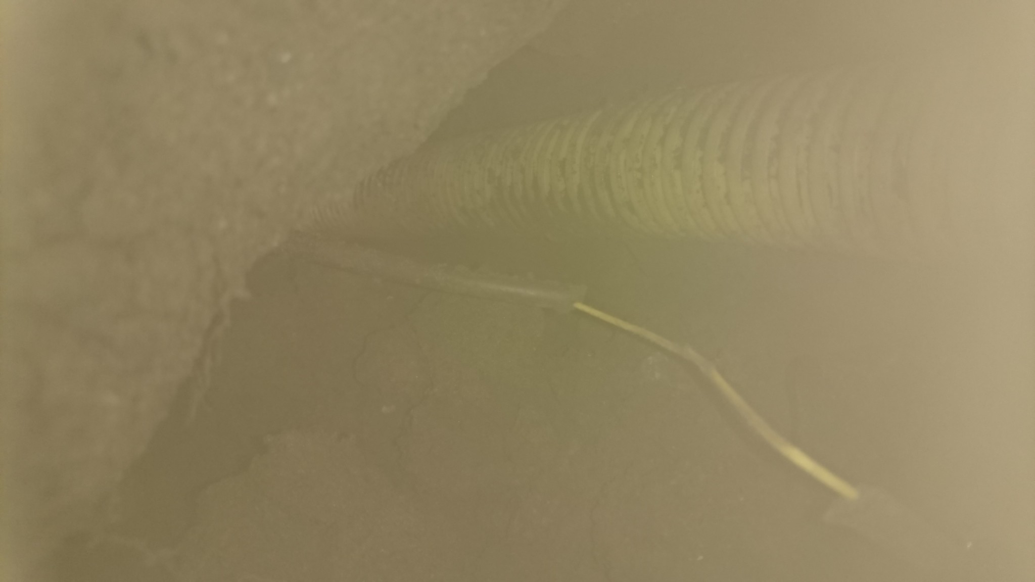 Skarv mellan gammalt och nytt PVC rör för elkabel till vägguttag