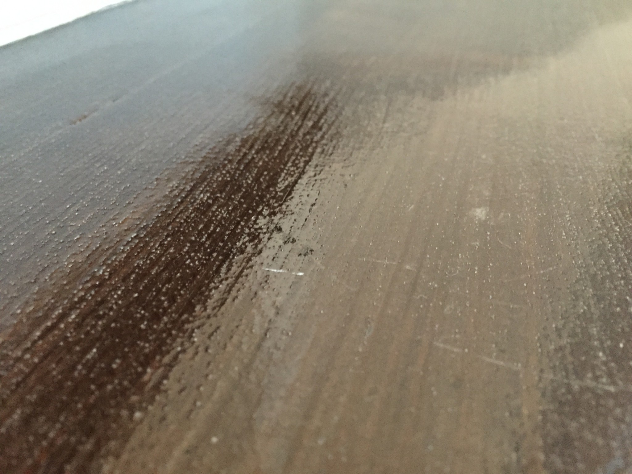 Och därefter ett lager vanlig lack för att det inte skulle bli för raspigt. Blev väldigt bra och ser ut som en vanlig klarlackad trappa på normalt avstånd.