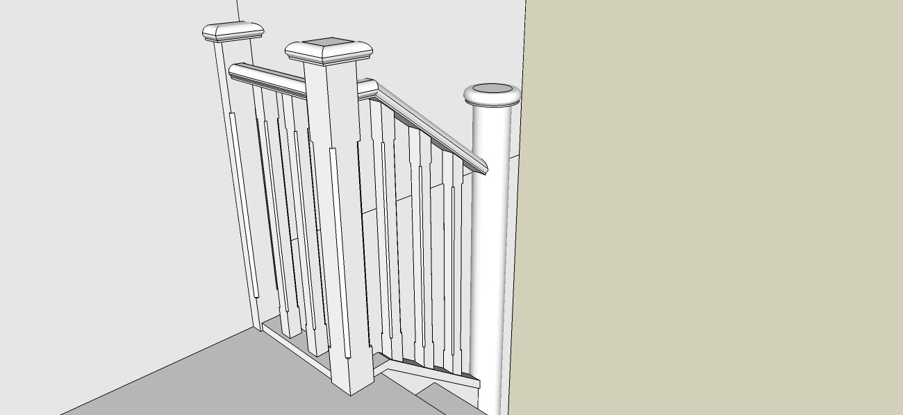 Det var äntligen tid för att fixa till räcket i trappen. Jag hade sedan tidigare beställt delarna men utan kapningar, så det blev lite pyssel för att få rätt passning. Det tog även sin lilla tid att betsa + lacka handledarna och måla stolparna.Skruvade de stående ribborna uppe och nere då överliggaren hade en lös underdel. Limmade sen ihop paketet med handledarna och borrade och limmade med pluggar i stolparna.