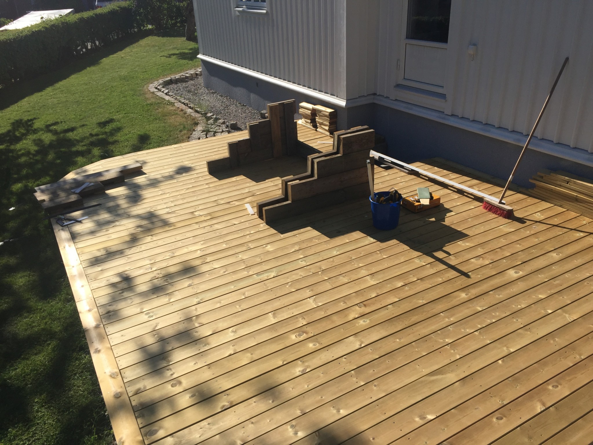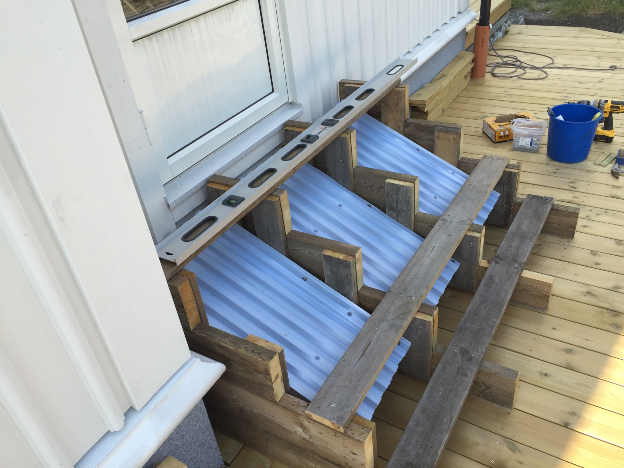 Ett tips är att då som vi som tog lite tid på oss med byggandet, ha en presenning runt traven med trall. Då torkar inte trallen ojämnt och det blir lättare att lägga den. Använde rostfri A2 skruv då den verkar fungera bättre pga mjukare stål än ytbelagd skruv.