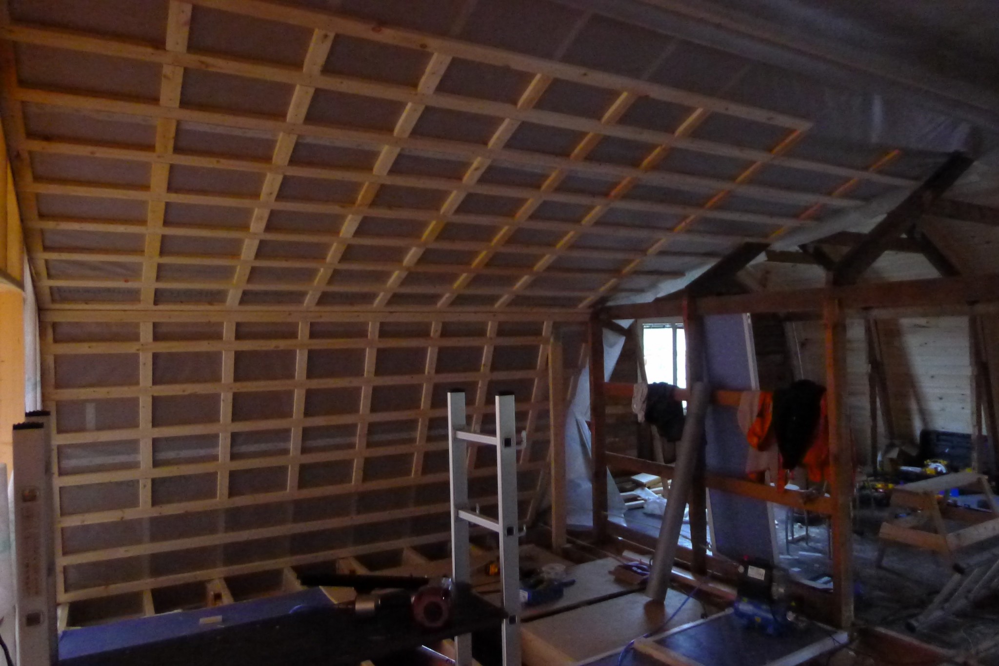 Trött i armen nu, gillar inte att spika i tak. Börjar att bli sugen på att hyra en spikpistol nu när mina "spikpistoler" svärfar + pappa har lämnat mig. Så nu kommer tempot att sjunka rejält, det är bara ert stöd kära forum som kommer att hålla mig uppe (förutom frugan) så fortsätt gärna heja på.