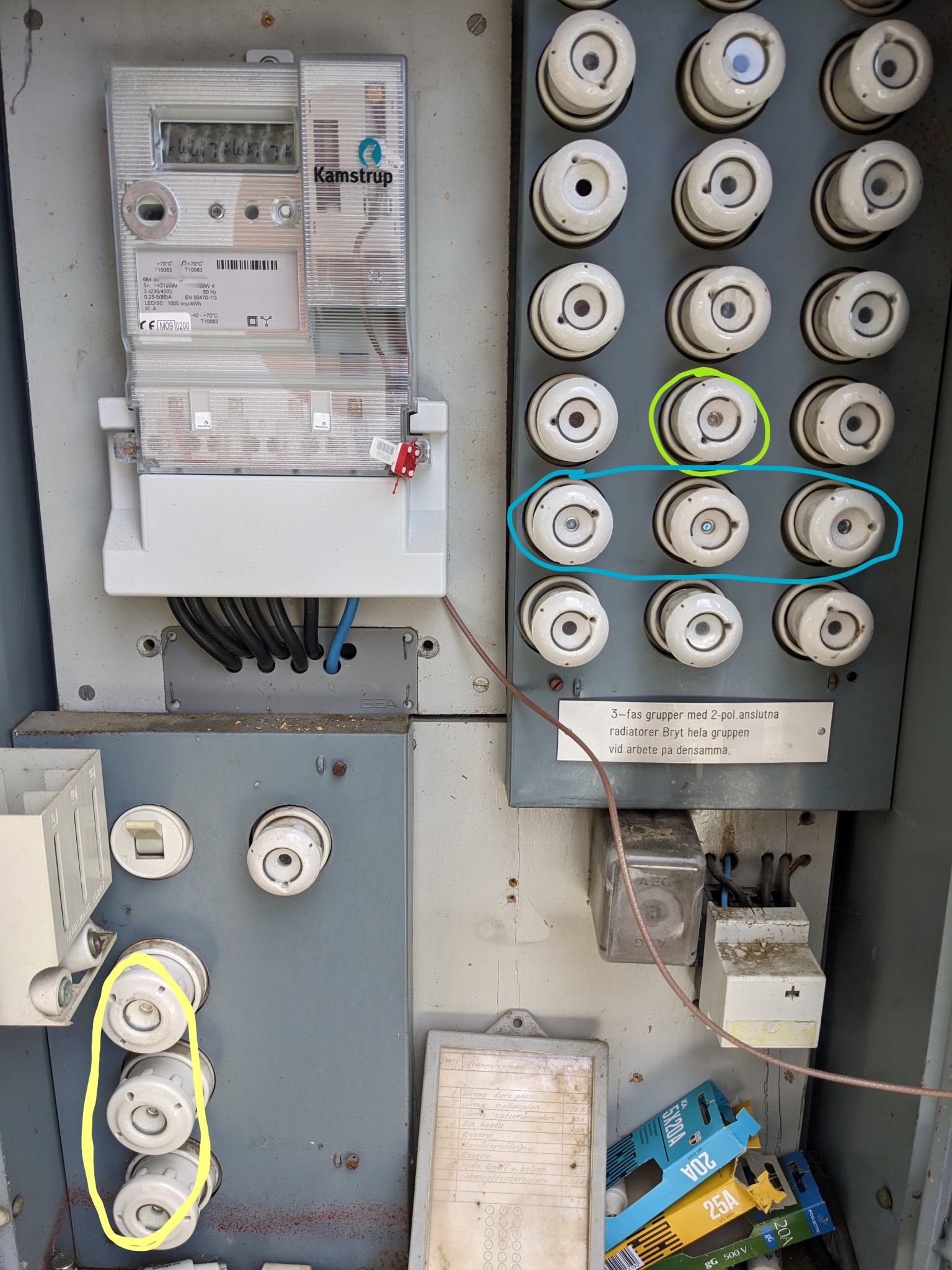 Är det 3 st undergrupper som går in till huset eller? Varför smäller 20A säkringar när jag betalar för 25A?