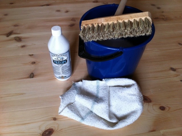 4) När du kommer hem skurar du golvet med 50% vitsåpa och vatten.