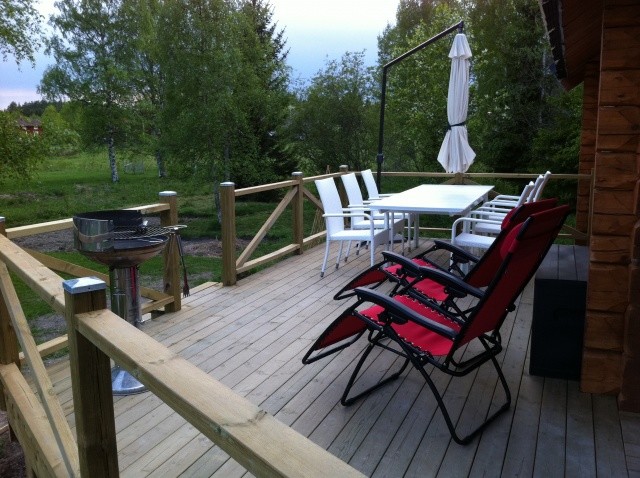 Svarta lådan på höger sida av altanen innehåller allting som har med grillningen att göra. Kol i massor, grillverktyg, nonstick-nät, tändvätska m.m.