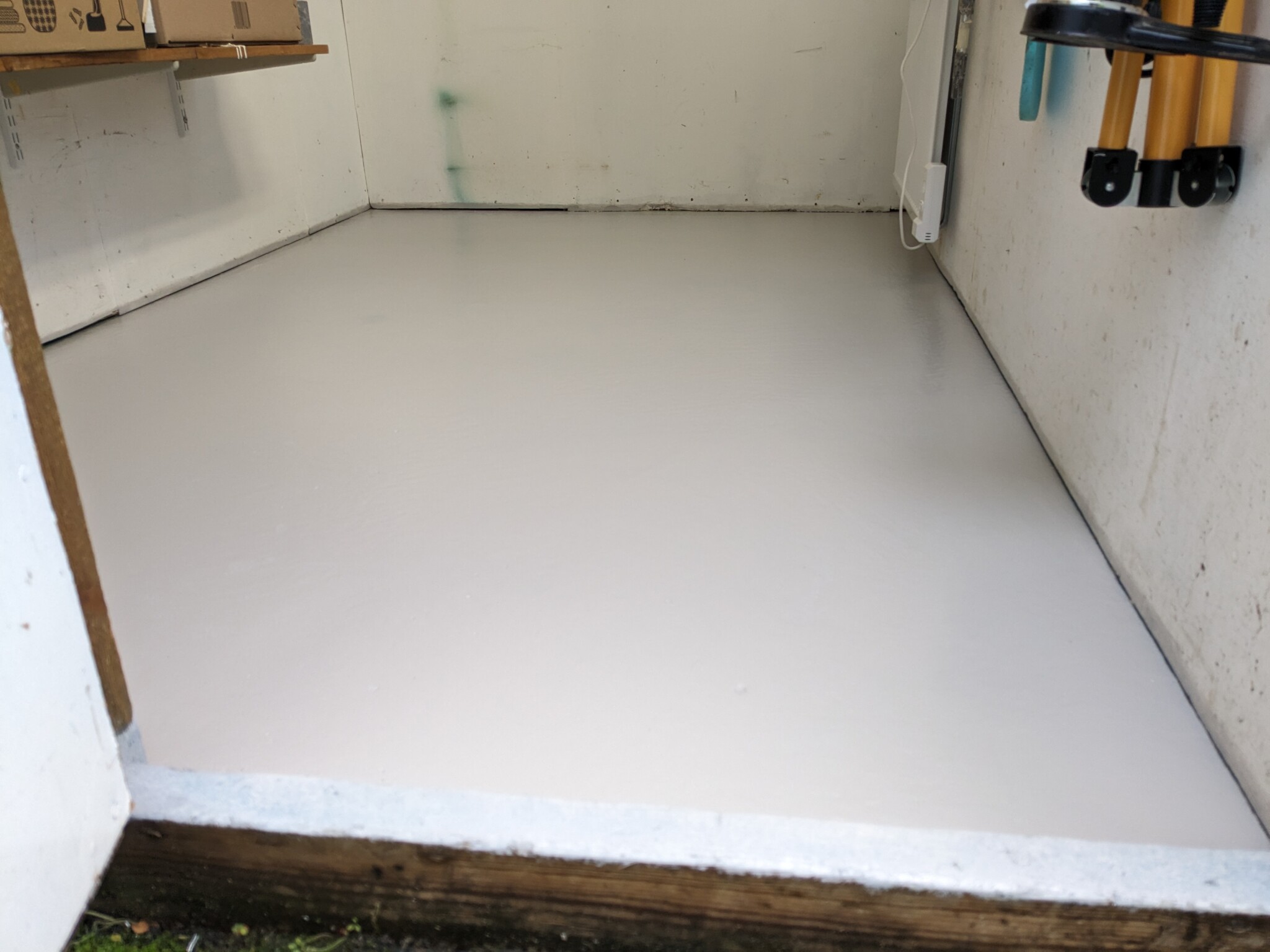 - Golvet var ursprungligen något grovt i ytan. Hade det varit glattare betong hade jag övervägt att blanda i lite sand i första strykningen som halkskydd. Tror det kan bli halt om det är blött på ett helt slätt golv.
