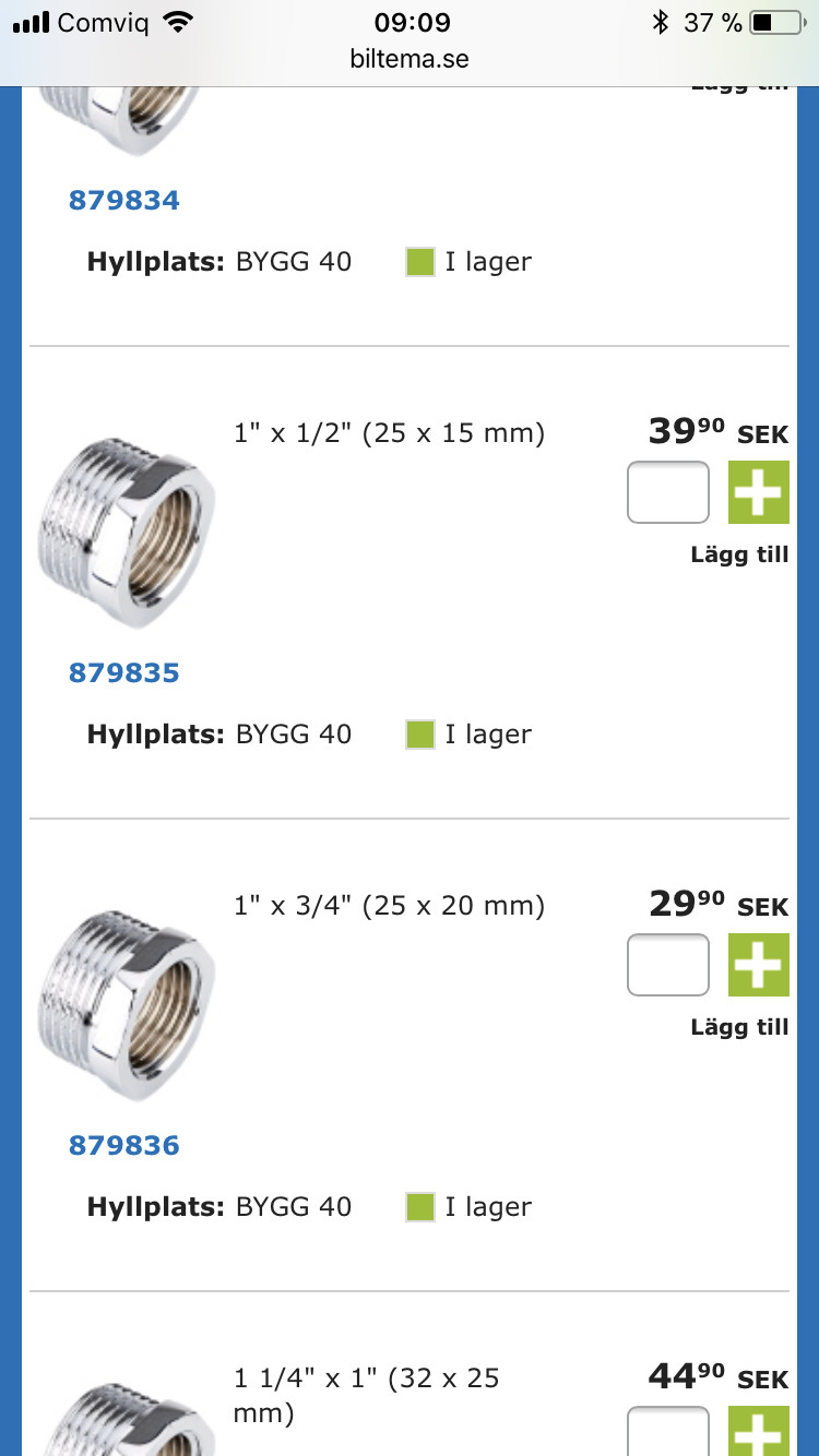 Behöver hitta en övergång från 3/4 invändig gänga till 1" utvändig till ett patronfilter. Jag vet inte om det är avsaknaden av sömn men jag kan inte hitta rätt, någon med mer nattsömn eller bara bättre koll på läget som kan hjälpa mig?