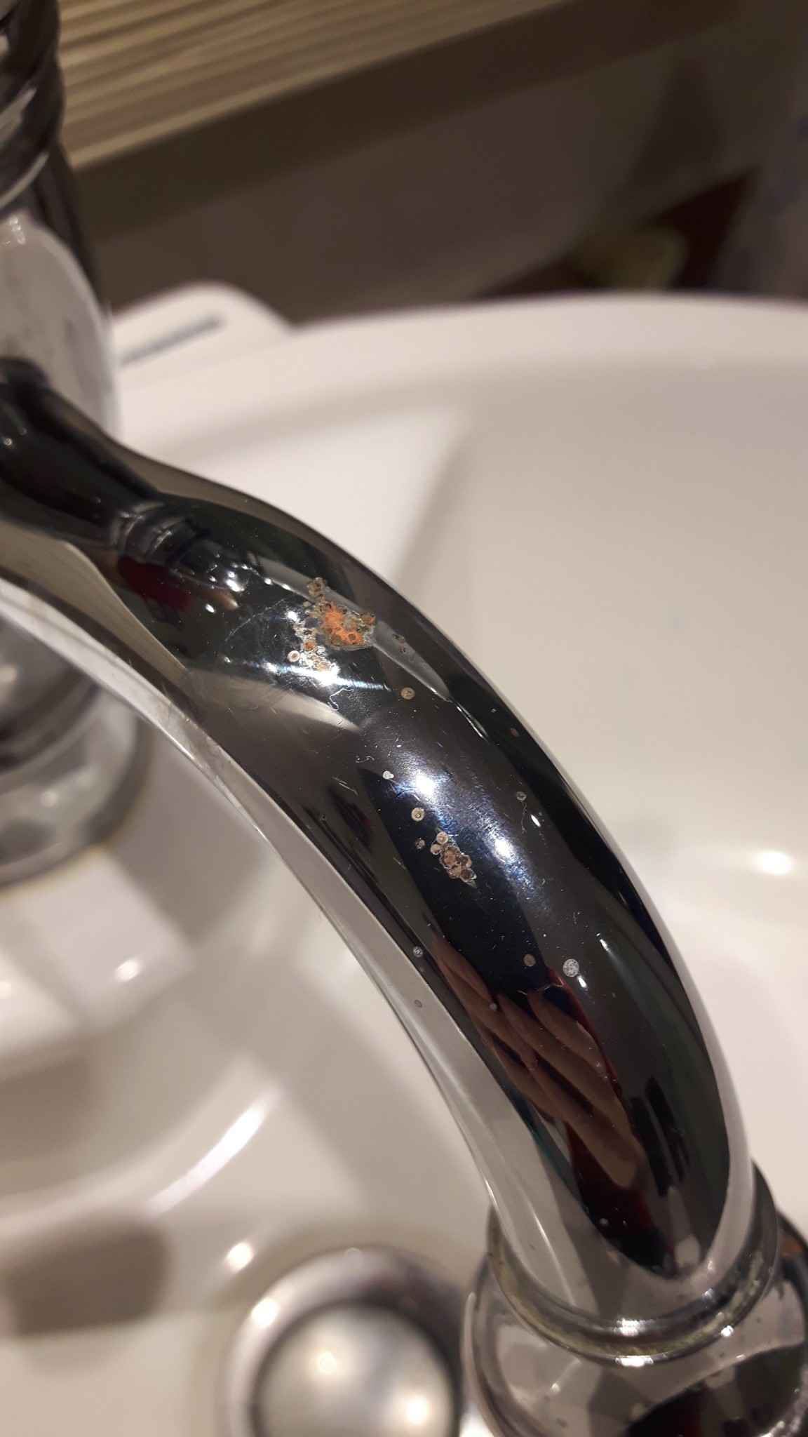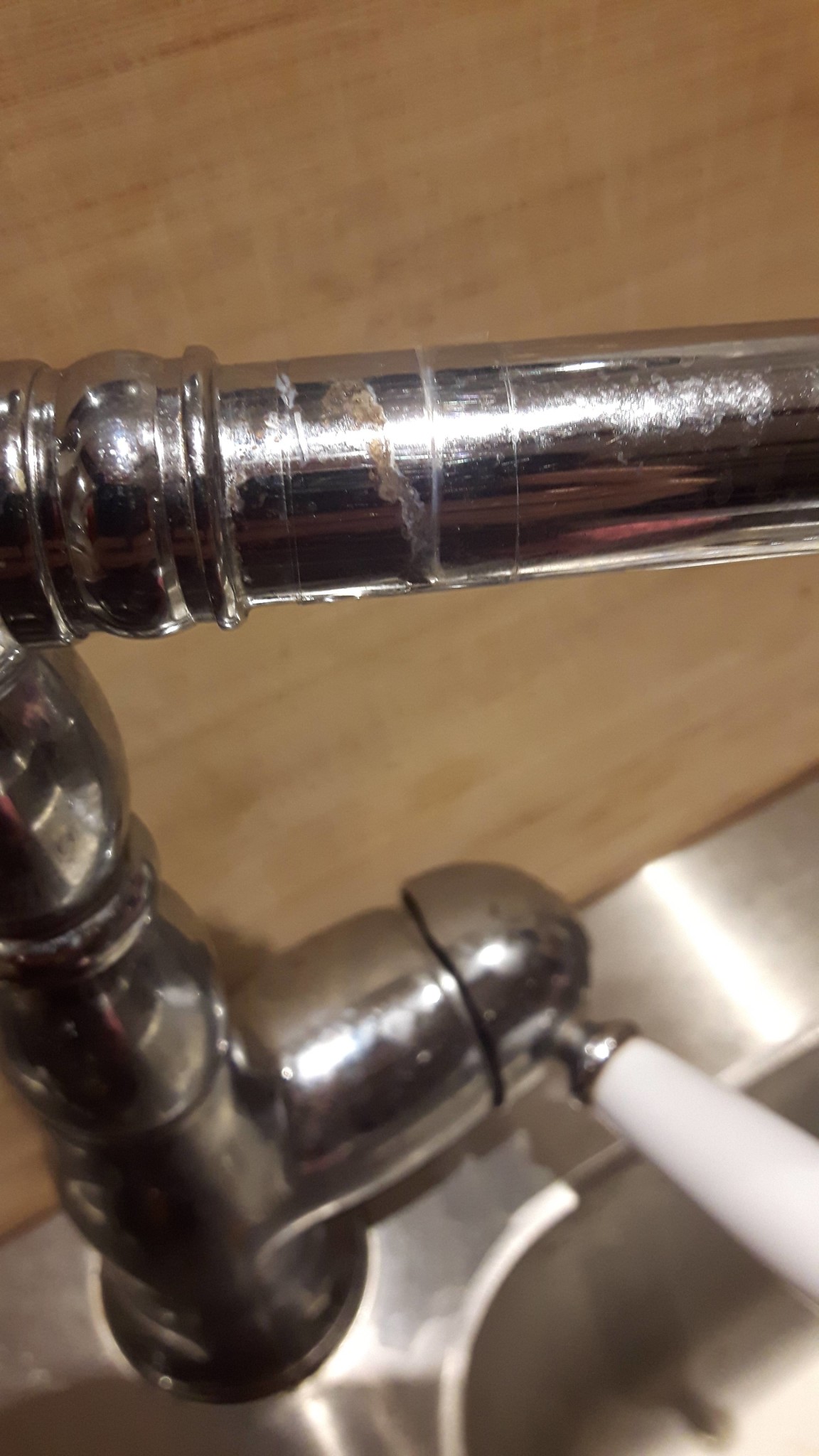 Har det suttit något på kranen, något som är av lite hårdare material, som kan ha skadat krombeläggningen?