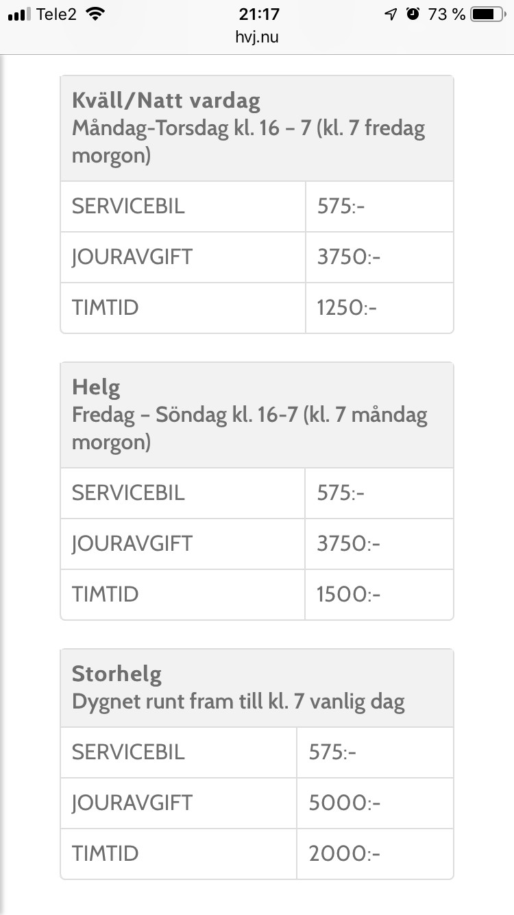 Va hos veterinären på jourtid dom tog 495 på min teleräkning för att jag skulle få boka en tid plus 5500 för mitt besök på 15 min vilket då skulle innebära 24000 kronor i timmen och då körde dom inte ens hem mottagningen till mej. Driver för övrigt eget och för en femtusing plus moms skulle jag nog överväga att åka till jobbet en lördagkväll annars så sitter jag nog hellre hemma med min familj. Kostnaden ska ju som sagt täcka både jourlön samt kompledigheten dvs minst 3ggr normal timdebitering skulle tro att tex bravida tar runt 750-800 kr inkl moms vilket blir typ 2200-2400 kronor i timmen plus framkörning och milersättning