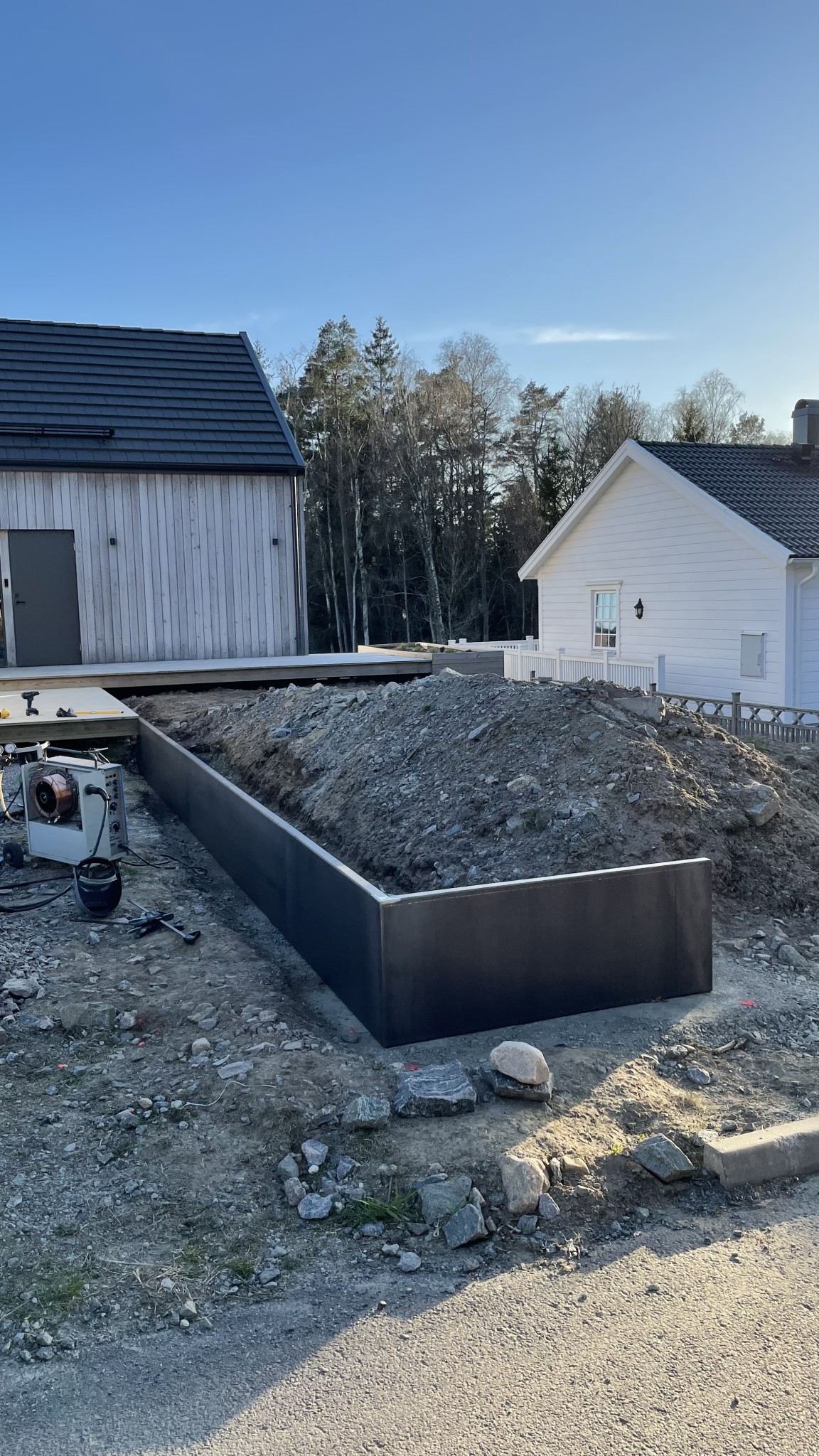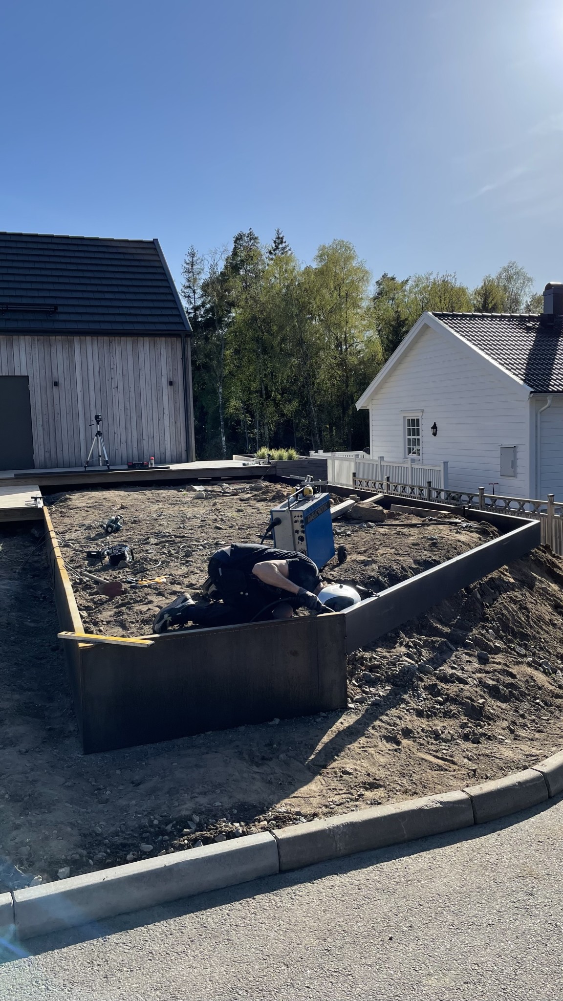 Efter mycket om och men så tänkte jag sätta upp och svetsa våra stödmurar i corten (60cm höga, 40cm djupa och 4mm gods). Längd 3m+3m+1.5m varav den sista även är 1.5m djup.