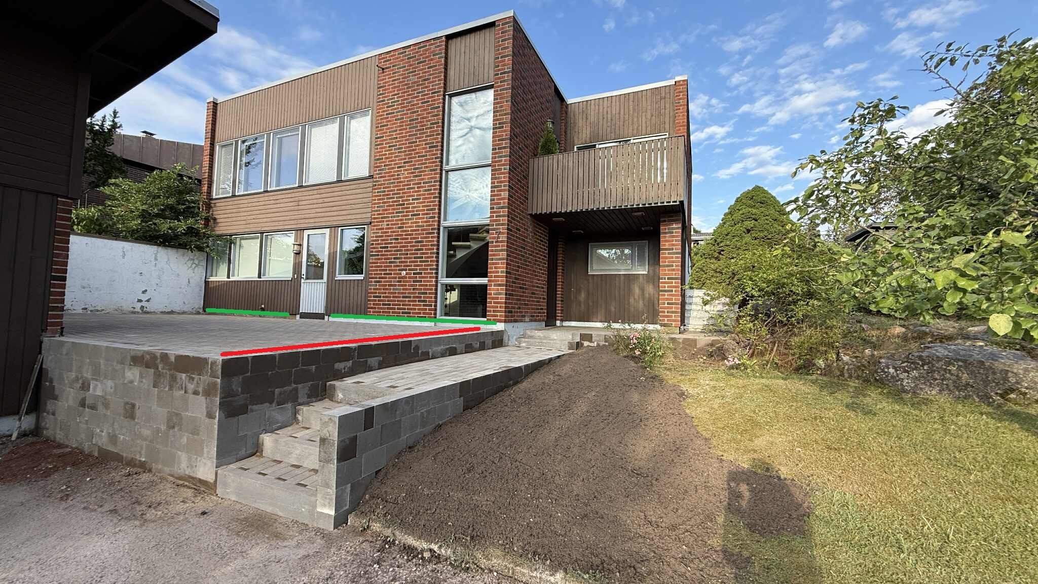 Kanterna oroar mej lite, vill inte halka där på vintern. Kan man slipa ner kanterna kring trappan med en vinkelslip, eller hur hade ni gjort?