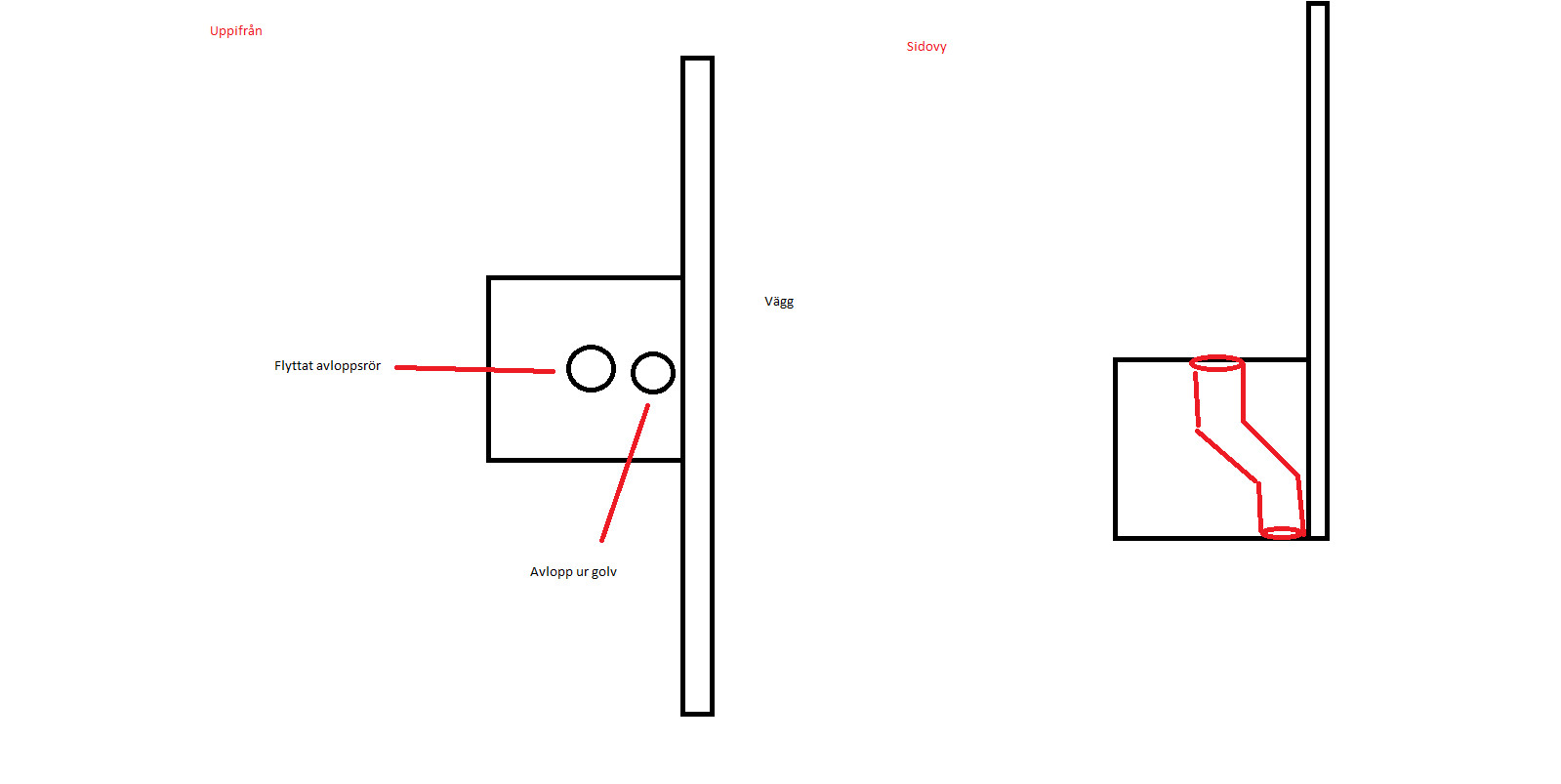 Ja men du får inte sätta en rörmanchett om det inte är 6cm från vägg. I mitt fall är det 1cm från vägg. Därför ska jag sätta två 45g vinklar för att flytta röret från väggen. Har ingen möjlighet att bila golvet eller dra i väggen just här.Krilleman skrev: