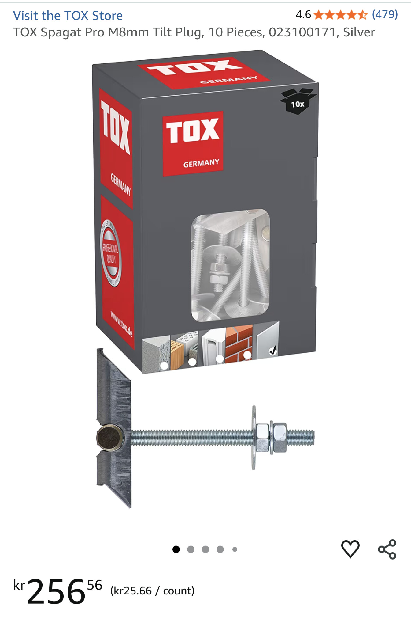 Har idag en 65 rummare som väger 45kg och är fäste i en regel och mollyplugg.