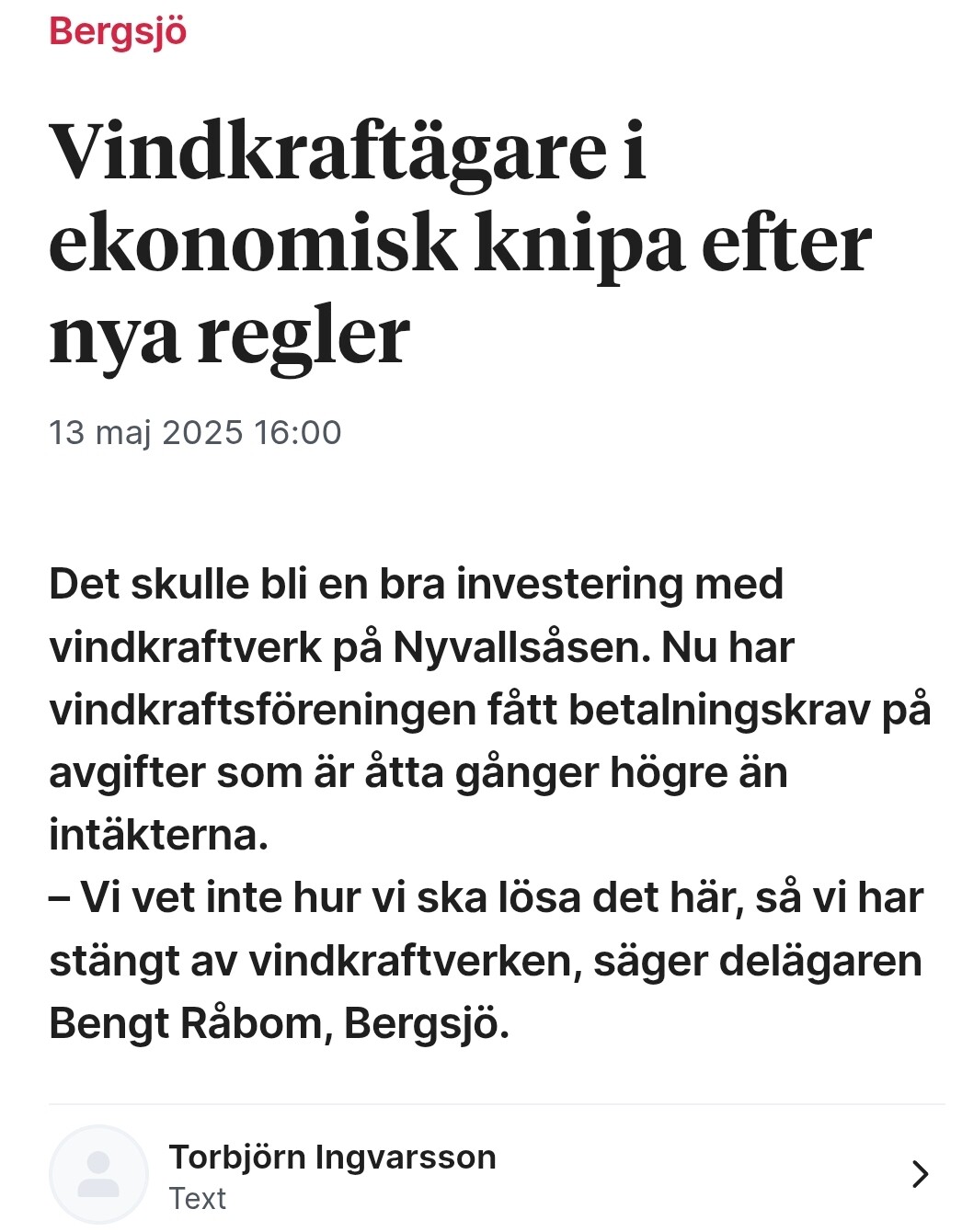 I det aktuella fallet med vindkraftverket som fick straffavgift på ca 500 000 kr består överproduktionen av några timmar med vind ca 10 m/s mot ca 8 m/s prognoserat. Vindkraftverket med total kapacitet 3,2 Mw, mindre än 1% av Sveriges elproduktion har överproducerat någon promille av vår totala elproduktion.