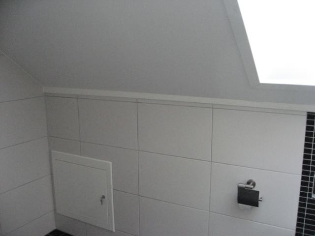 Och framför allt så skulle de haft en betydligt större bit platta upp mot snedtaket än de har satt. När fogen hamnar så nära så syns det väldigt tydligt att det är snett. Förutom att det ser lite illa ut med så små passbitar.