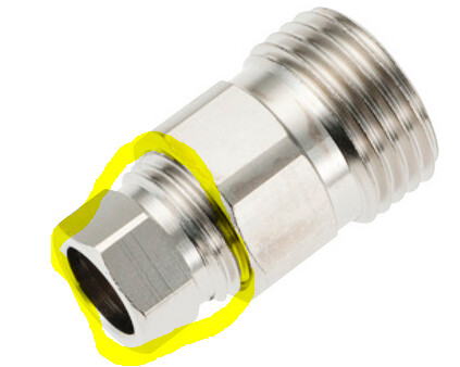 Ser ju ut som endast muttern på en vanligt anslutningskoppling för diskmaskin. (10mm klämring till 15-gänga)