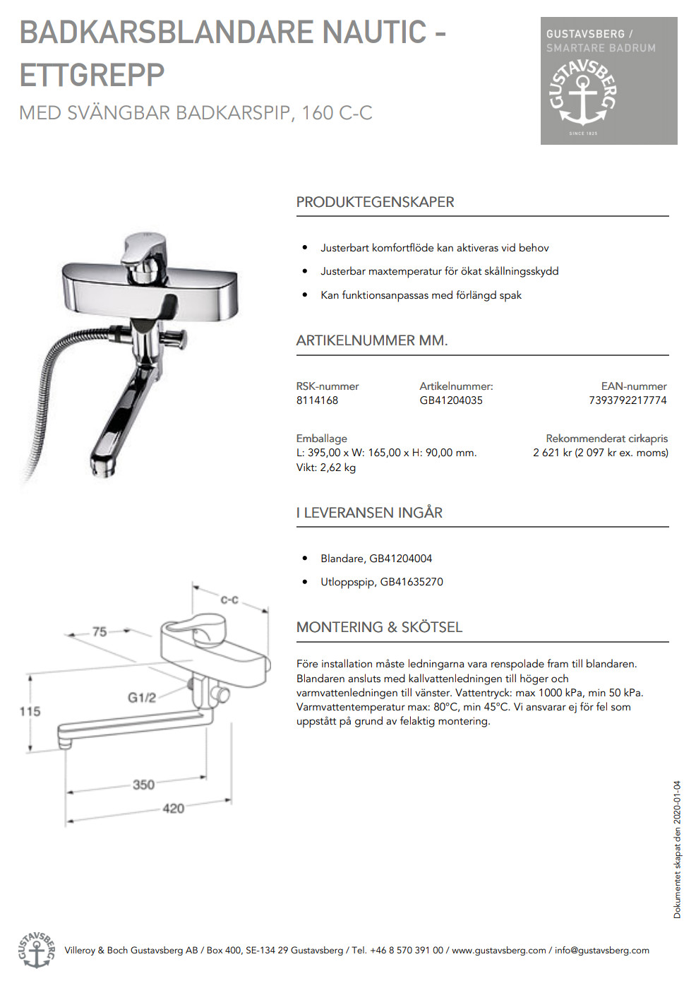 Det var den första tanken men oron är att den inte kommer att nå ut hela vägen till badkaret då kanten på det kommer börja c:a 10-15cm från väggen där slangarna kommer upp ur plattan. Rummet är c:a 20-30cm bredare än badkarets längd. Med ett hörnbadkar som hade stått upp mot den sidan av väggen så hade det inte varit några problem med blandare på kortsidan men badkarsönskemålet är av den runda/ovala typen nedan, och det kräver nog sidomatning för att man inte ska vattna halva golvet också.Staffan2000 skrev: