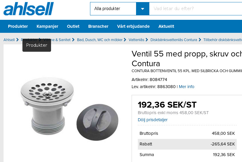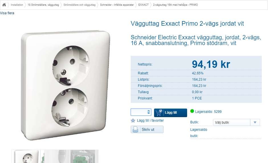 Jag upptäckte faktiskt sen att samma uttag kostade en tia mindre hos annan leverantör (storel ?), dom hade dock matat in det under annat namn så det hittade jag inte förräns jag matade in E-numret jag fick från ahlsell och sökte på det istället.
