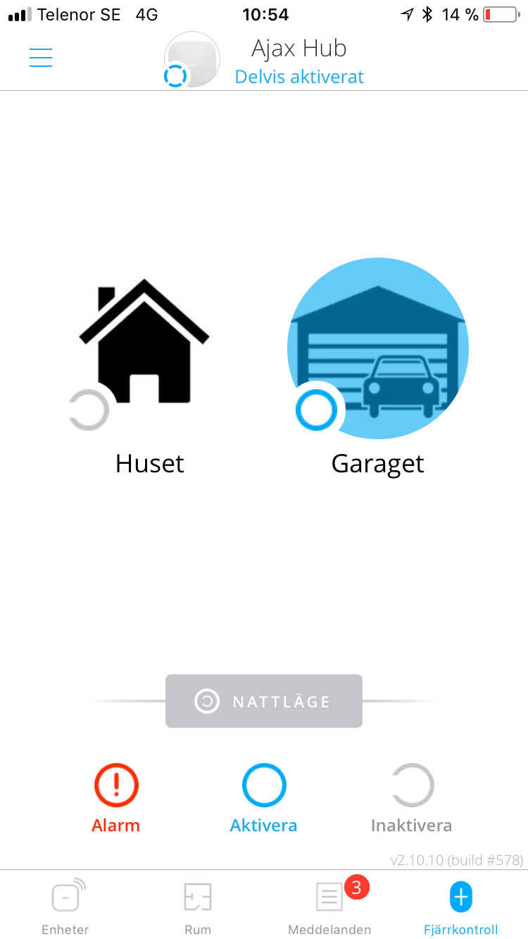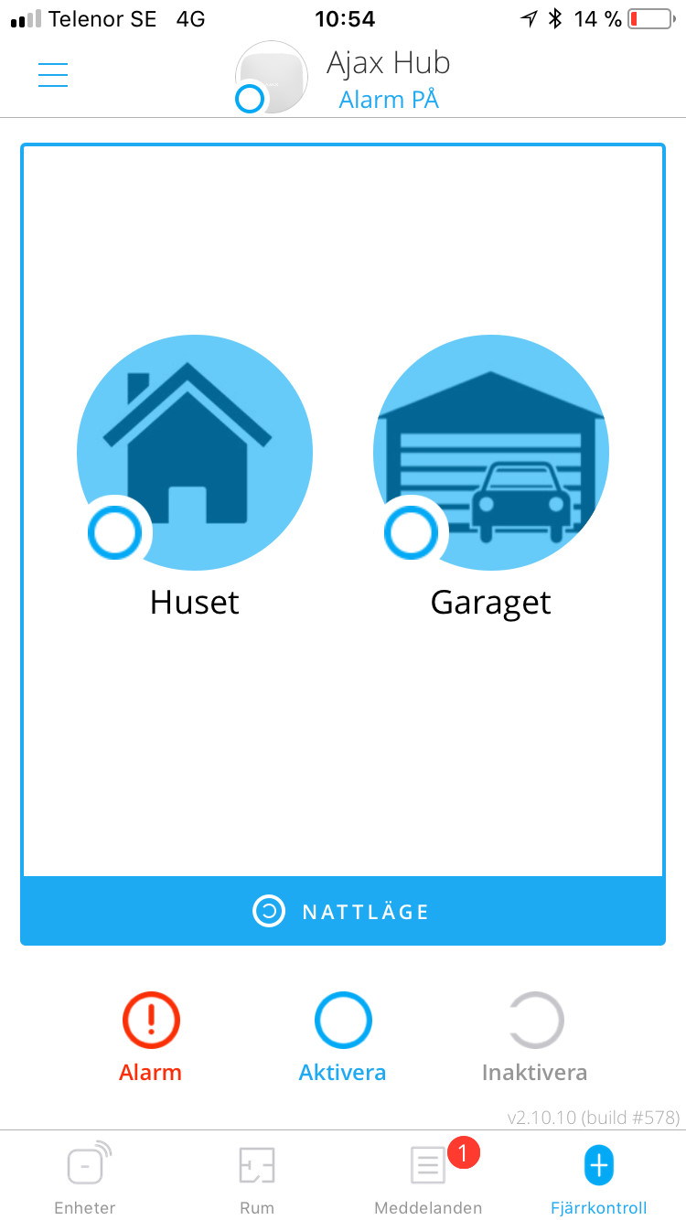Detta är som sagt vårt upplägg som vi tycker fungerar riktigt bra. Detta tycker jag är en av styrkorna med Ajax, dvs att manej måste kompromissa med innehåll i standardpaket utan anpassar/byggar ut för att passa ens behov. Även ett plus att man ser temperaturen i varje definerat rum. Vi har knappsatsen men använder den bara för utpassage, annars styr vi allt med appen. Nyckelringen ligger gömd ifall om att.