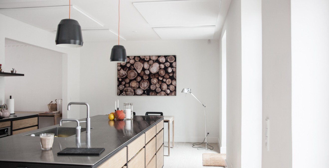 Min sambo och jag flyttade i somras och vårt första projekt var att bygga om köket i vår nya lägenhet. Allt blev jättefint - utom det som inte syns. Akustiken. Det ekar som i en resonanslåda. Jag har aldrig förr varit med om det i ett kök. Köket är cirka 20 kvm. Möblerna tog vi med oss från vår gamla bostad (och någon matta hade vi inte där heller). Gardinerna - som inte är så värst köksmässiga - satte vi upp i hopp om att kunna råda bot på eländet, men åtgärden hjälpte endast marginellt. Måste man ha väggen full av tavlor och hyllor? Hjälper ens det? Funderar på att sätta upp plattor i taket, men skulle i så fall gärna vilja veta vad som krävs. Gärna något diskret. Tacksam för både erfarenheter och tips!