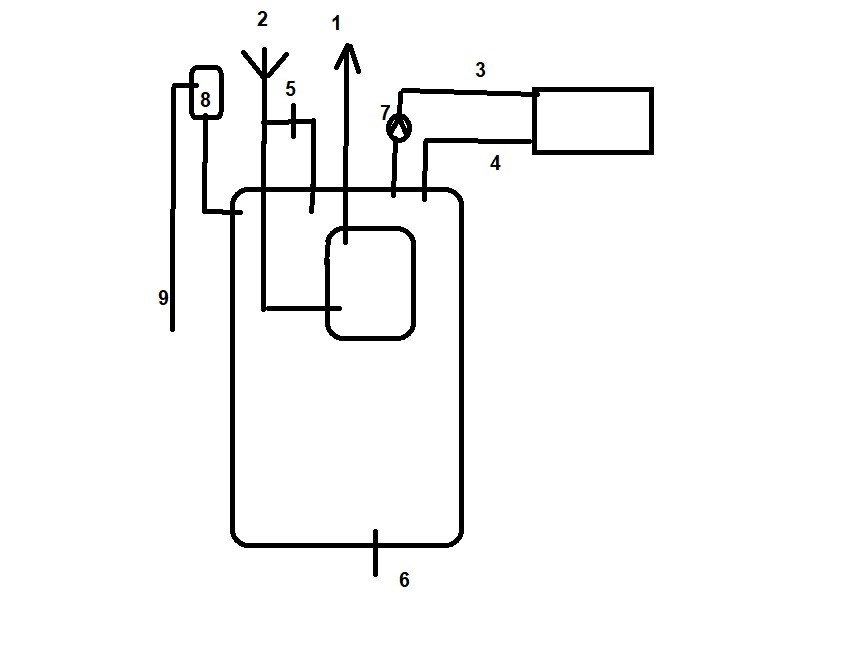 Då du tappar ut via 6 försvinner vattnet i pannan och runt varmvatten tanken (därvid kan varmvattnet inte värmas) och från elementen