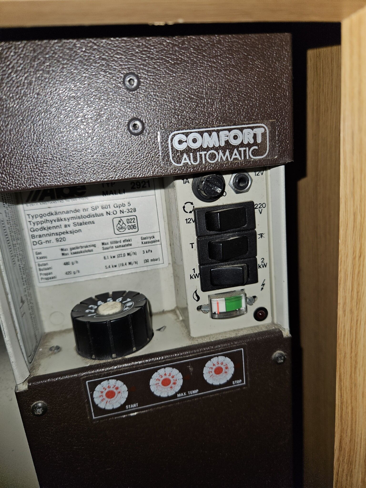Köpt en begagnad husvagn med alde 2921 system. Kopplar in ström och försöker köra värmen. Händer inget. Men trycker jag knappen på 12v brummar det och elementen blir varma.