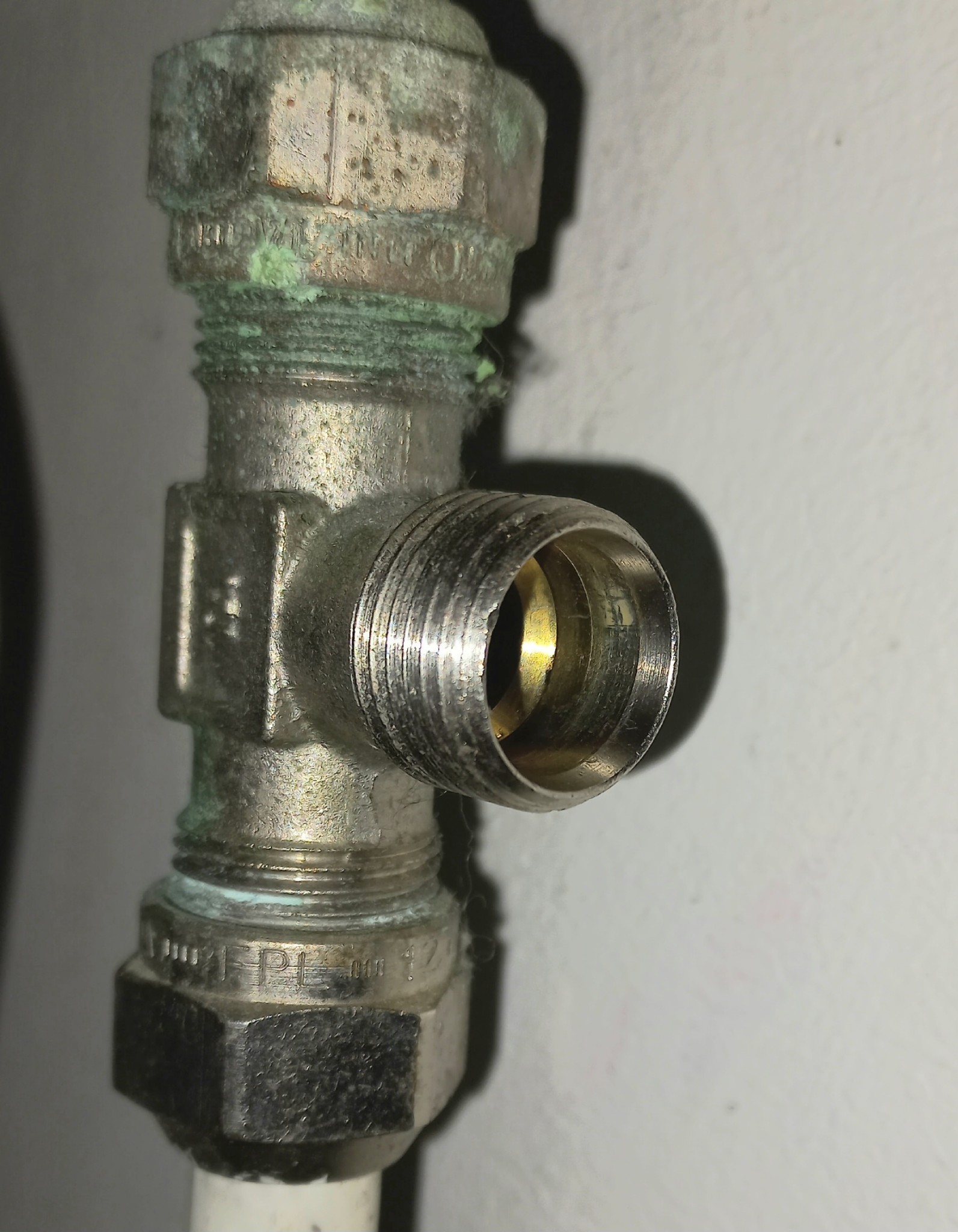 Jag förstår. Muttern och klämringen du har där är troligen för 12mm rör, rörstumpen på slangen är 10mm. Sen är frågan om gängan på t-kopplingen verkligen är konisk och gjord för en klämring, den kan också vara en slätända. Skruva gärna bort allt och ta en bild från samma vinkel.