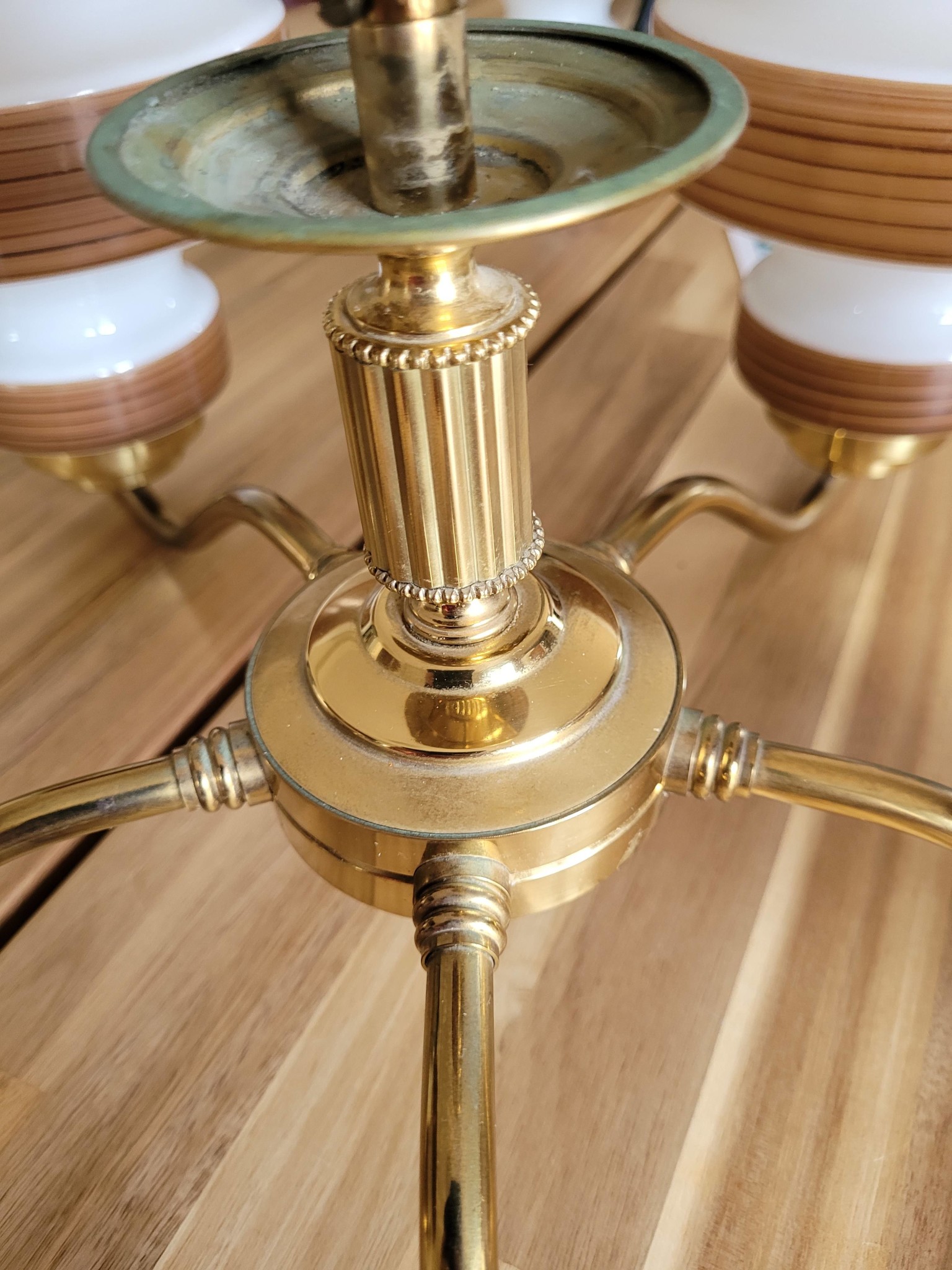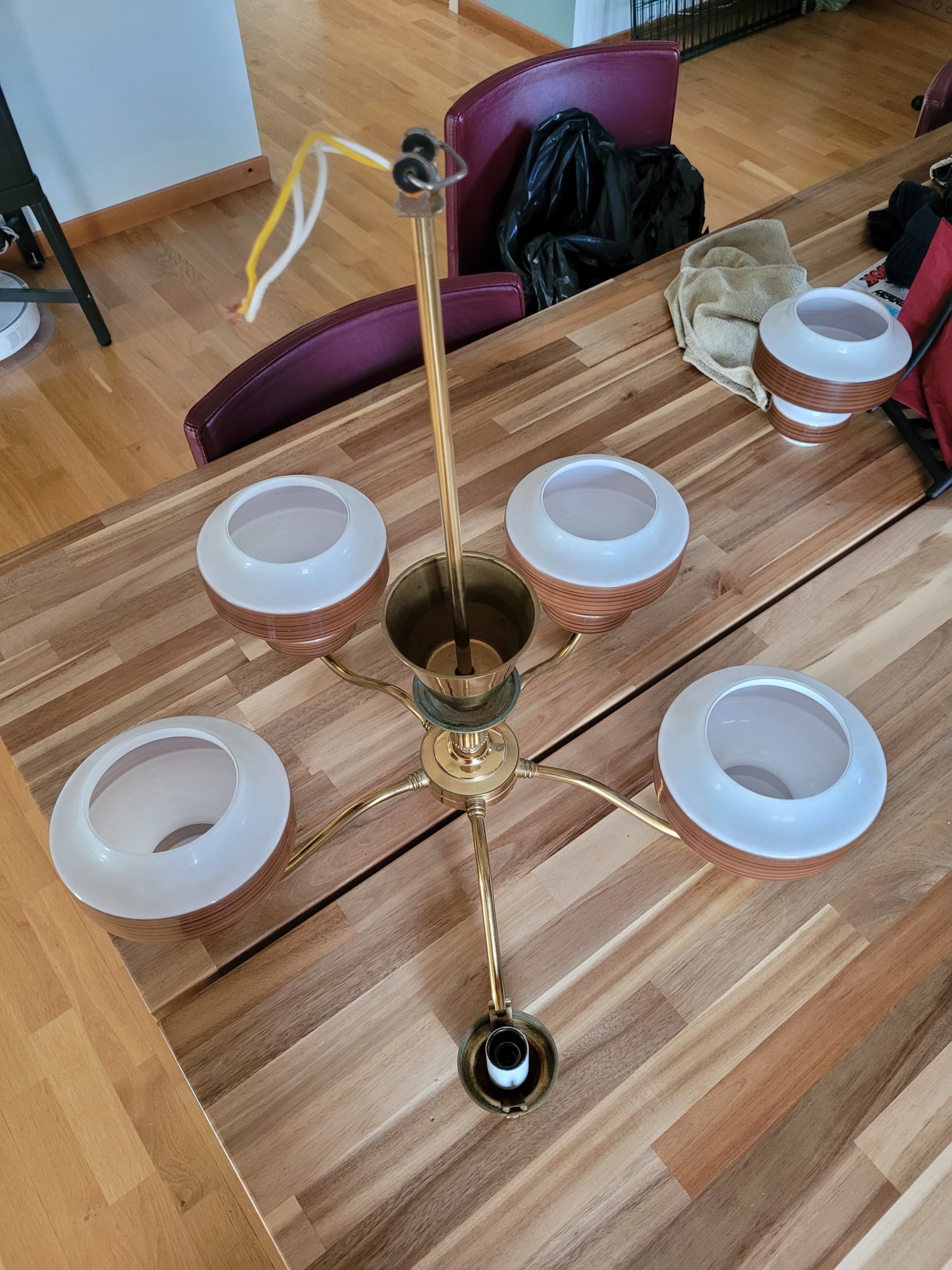 Det är en fin armatur och det verkar vara enkelt att renovera den. Den besvärligaste biten är att byta ledning i armarna, men du har bara en svårt 90-böj så jag tror det kommer att gå smärtfritt.