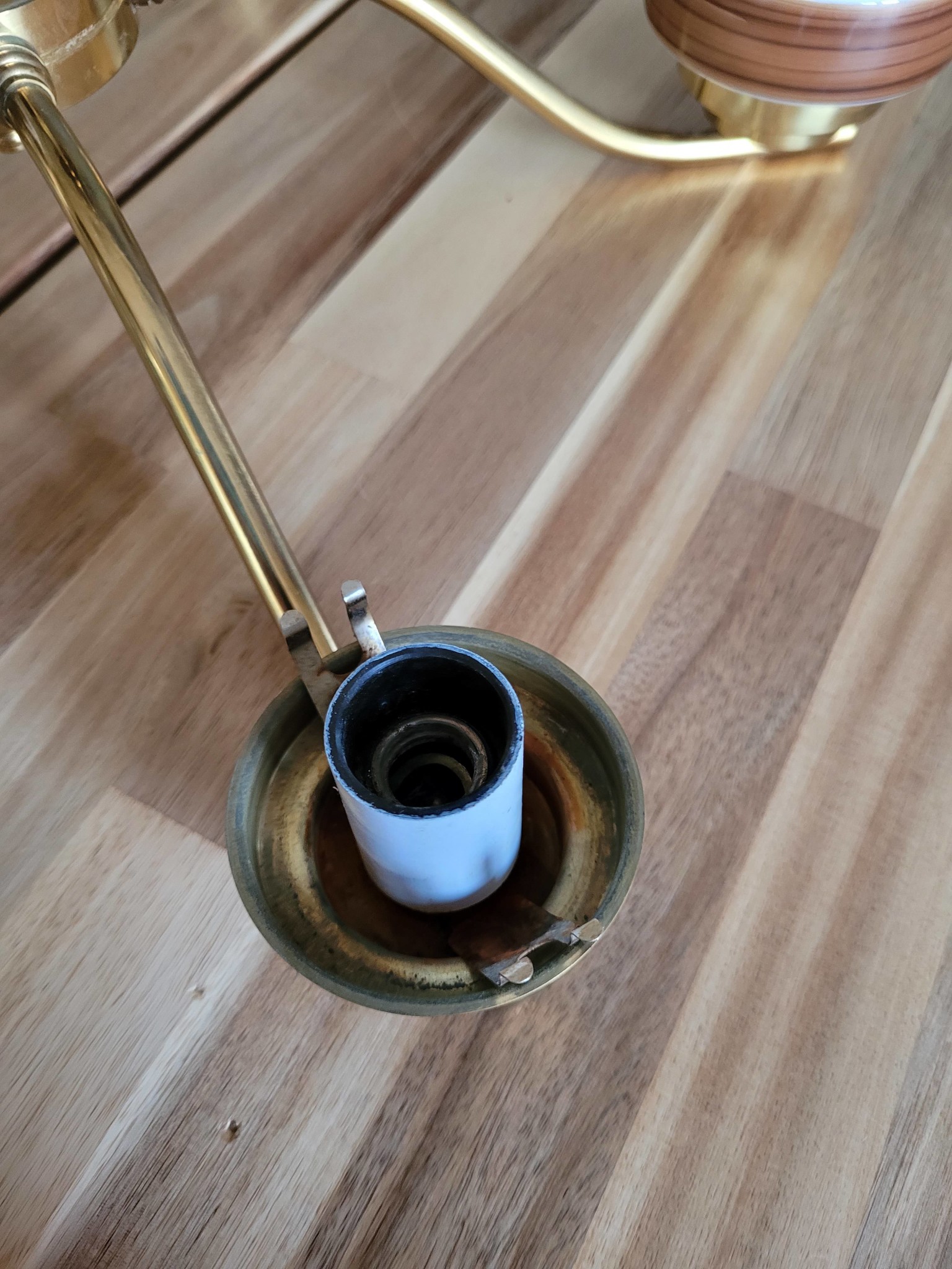 Vi har fått en äldre mässingslampa som min fru vill ha upp, så behövde byta den gamla jordade lampkontakten till en DCL-kontakt.