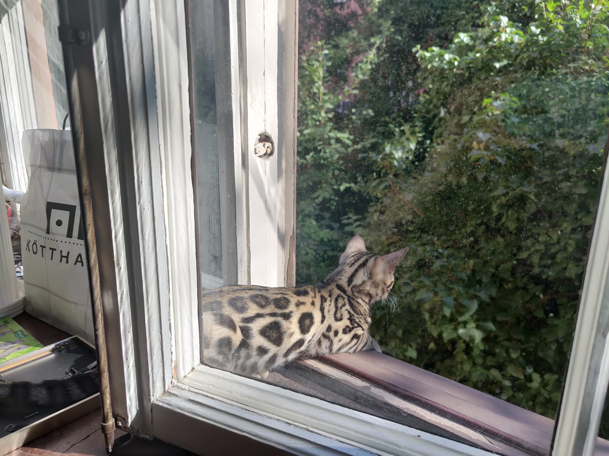 Nisse lägger sig strategiskt i mitten av öppningarna, bakom hjulen på rullatorn eller liknande.. och så ligger han där och sträcker ut sig.. och när pappa säger åt honom att flytta sig - så öppnar han (kanske, om han tycker det är värt de) ett öga... gäspar med sitt allra största gap.. och sträcker ut sig 2 meter till!