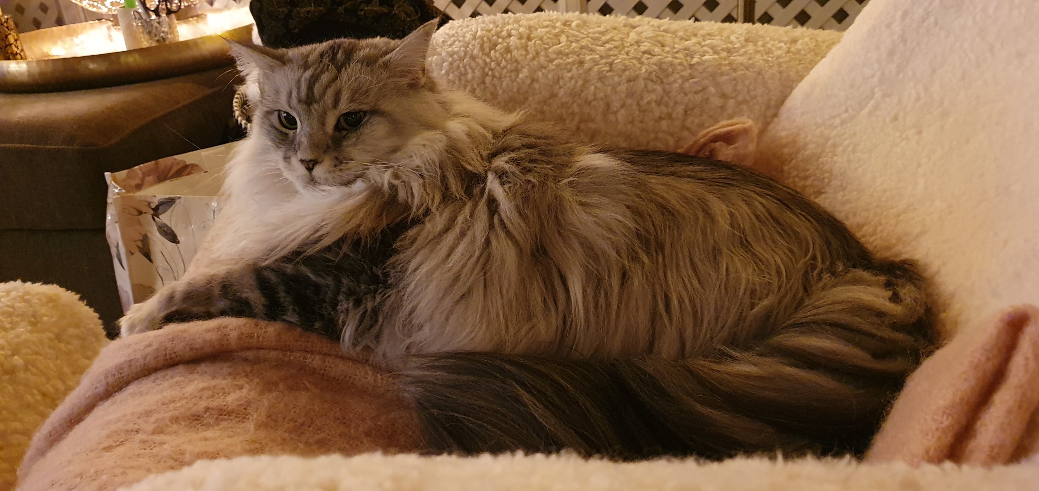 Annars ligger han mycket i mitt knä och snarkar...