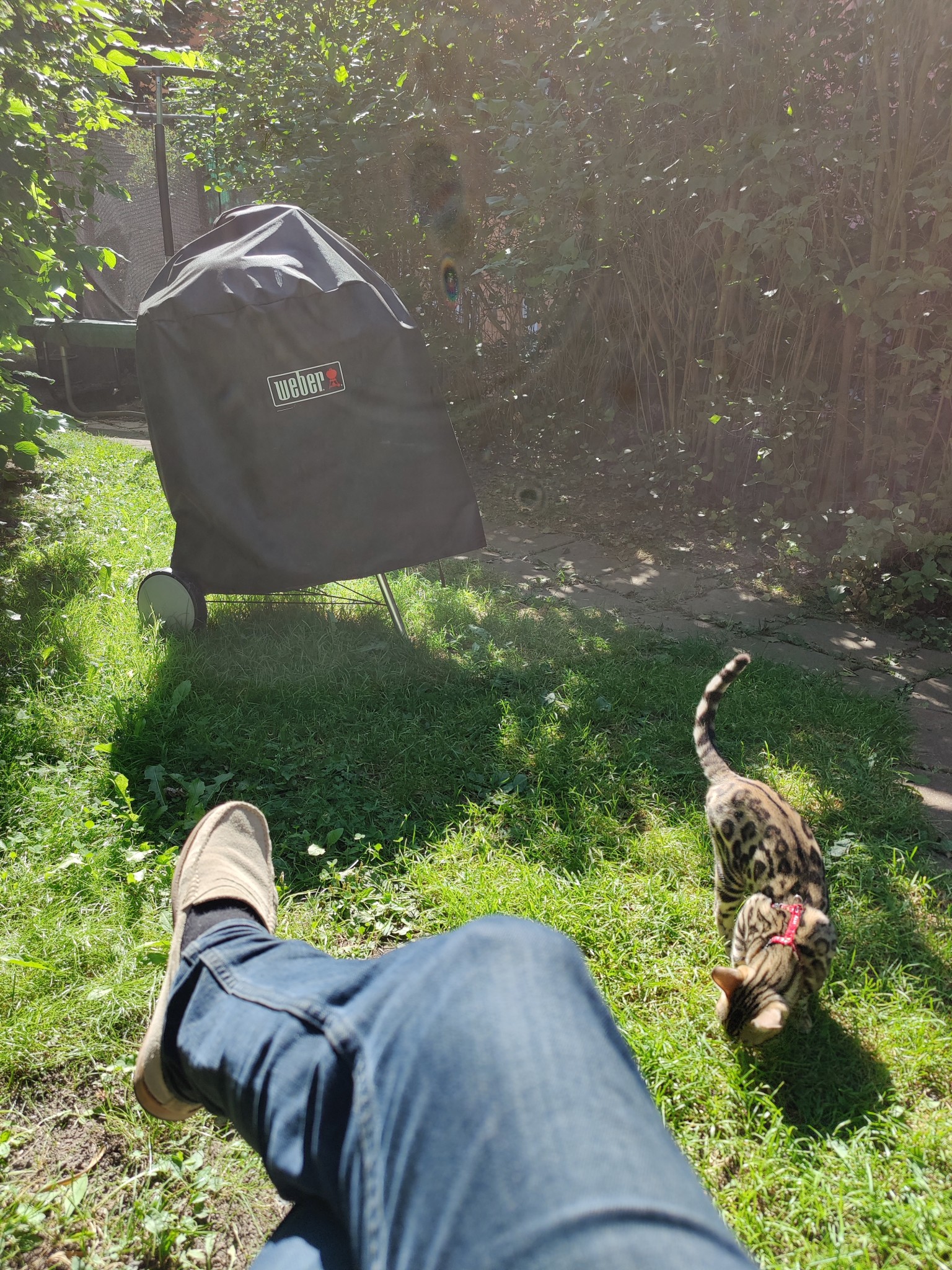 Katten är riktigt hemmastadd på innergården nu, kan tom släppa han där själv lämna gårdsdörren på glänt så går han upp till vår lägenhet själv när han är nöjd