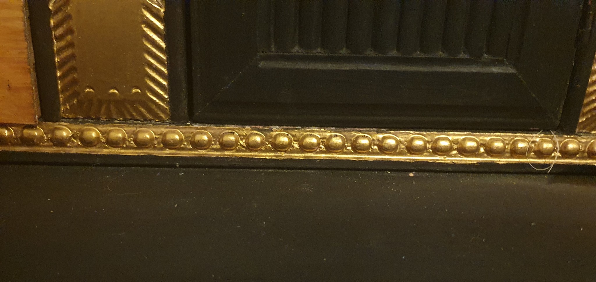 Skulle vilja ha en tunn list typ som denna, farmors skrivbord från 1600 där jag målade med bladguld. Men lyckades inte hitta en sådan list när jag gjorde kornishen..