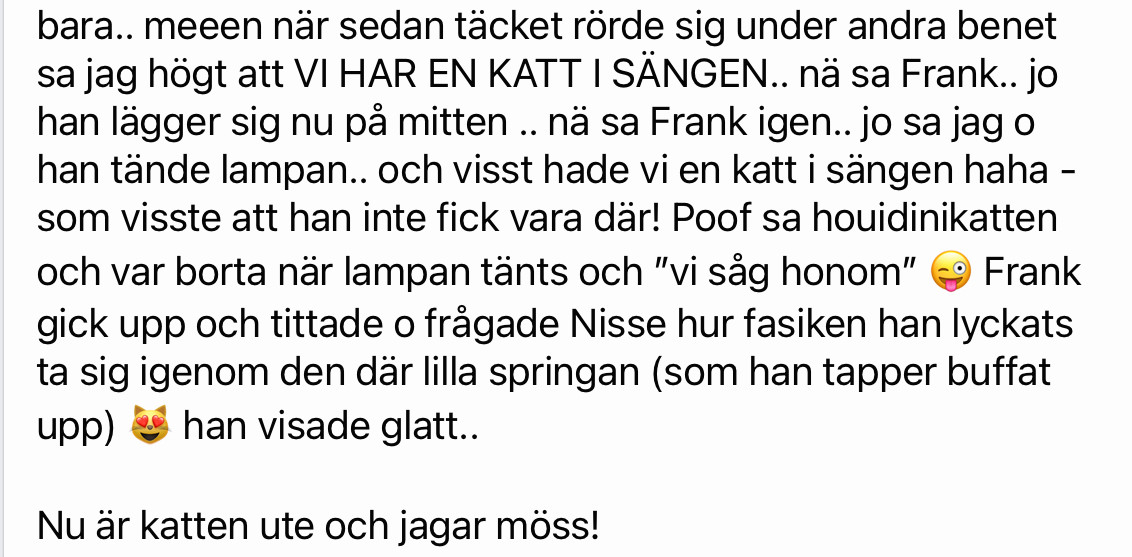 ...sen kom katterna på att de kunde dra i den så långt de kunde och sen släppa. Blev ett jäkla flygande