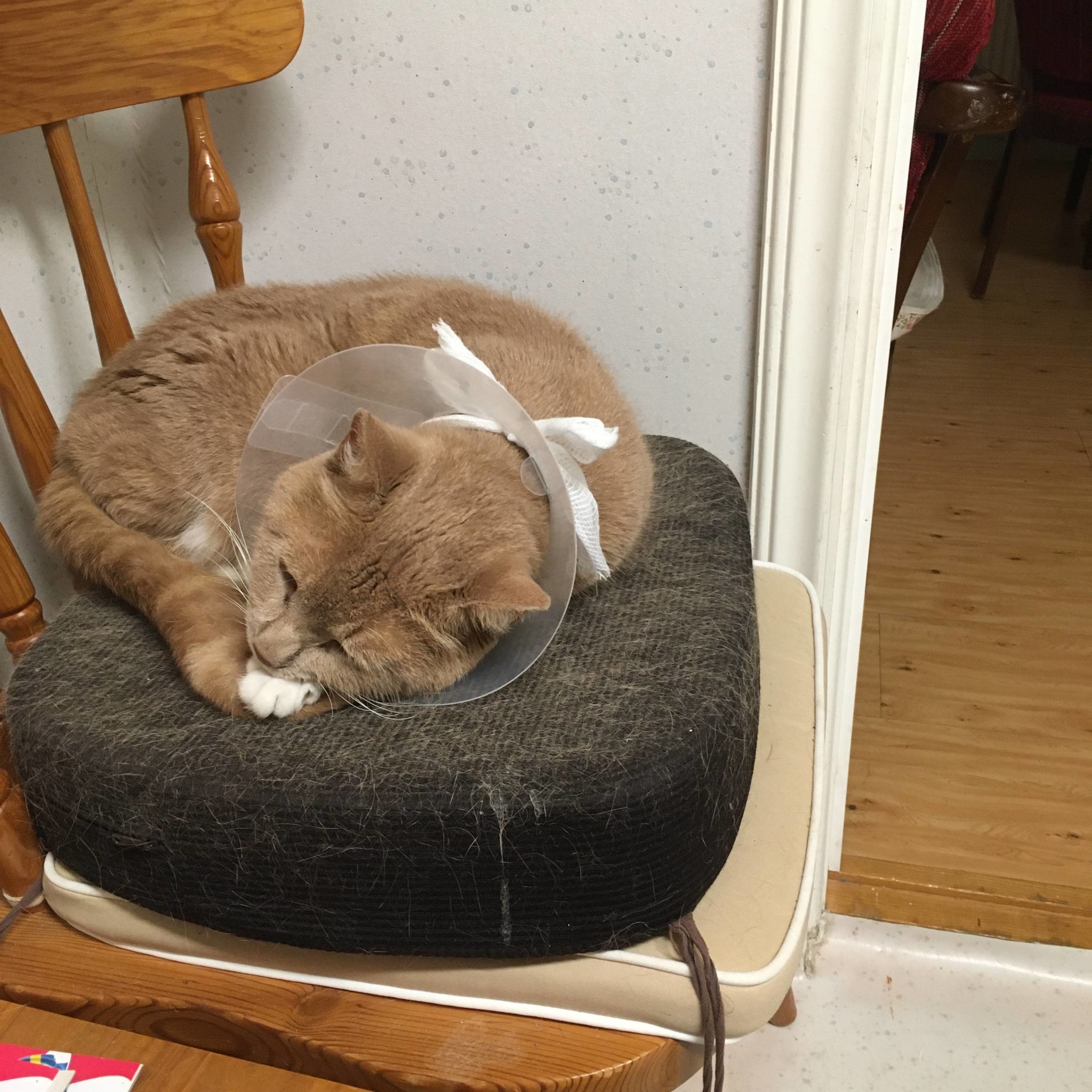 Visade sig att han troligtvis blivit biten av en annan katt och fått infekterade sår på båda sidor om benet.