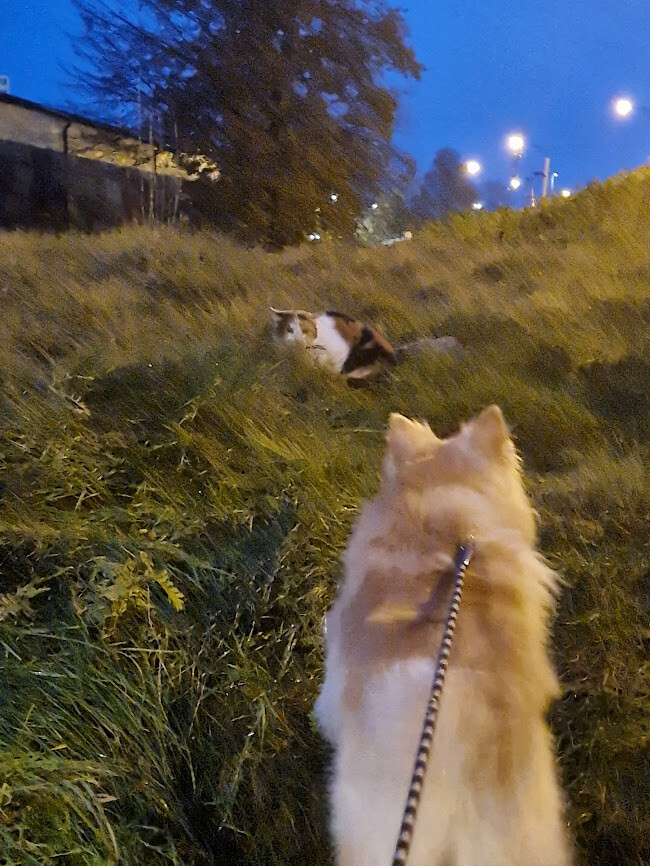Kebabsås, den lite ljusrosa som är populär i ärans och hjältarnas landskap, gick ner från husses finger i flera omgångar. Kebabkött ratade han. 😻