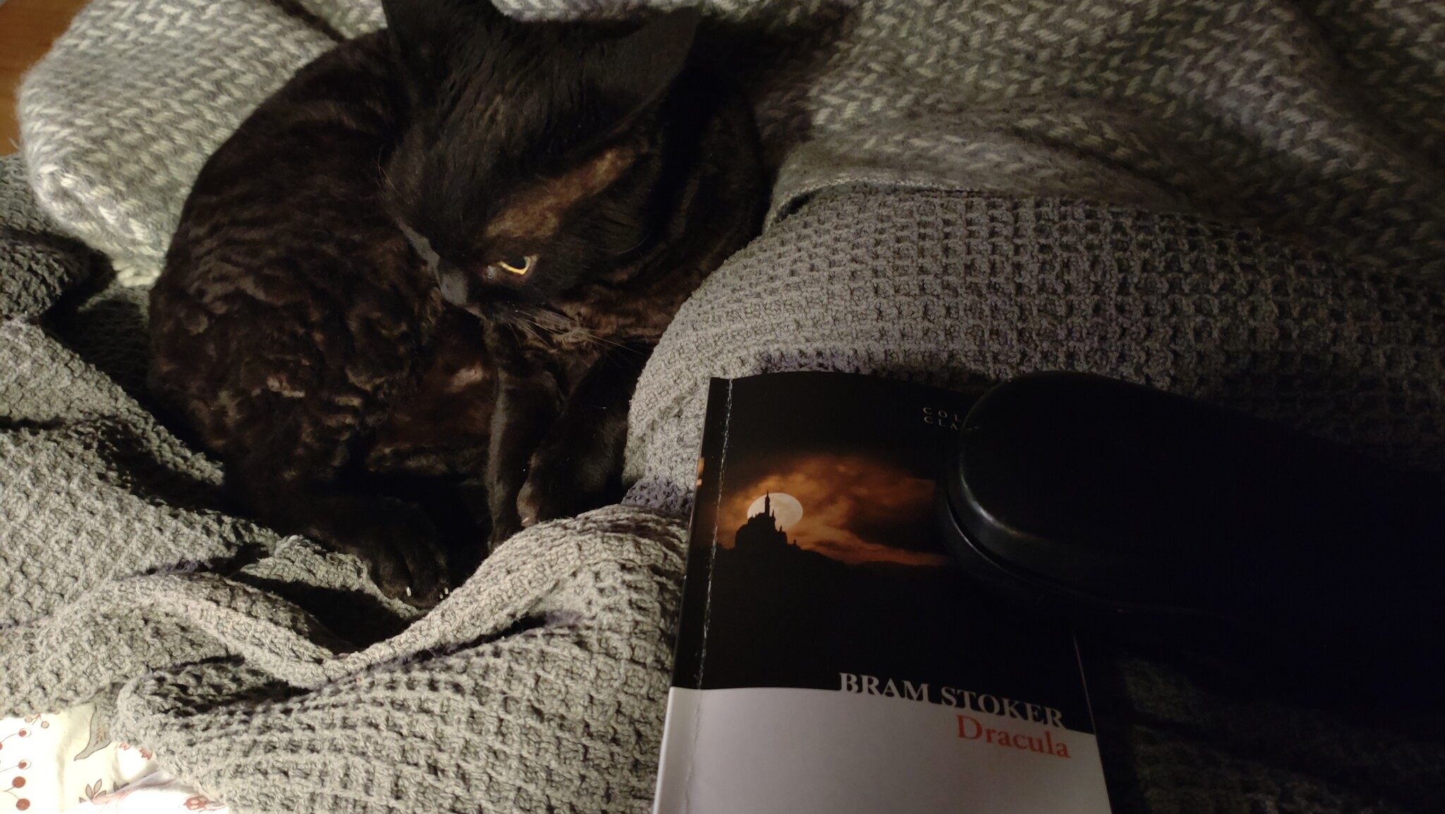 Smygande hopp upp, smög också upp på mig… men jamade högt när han la sig pladask..