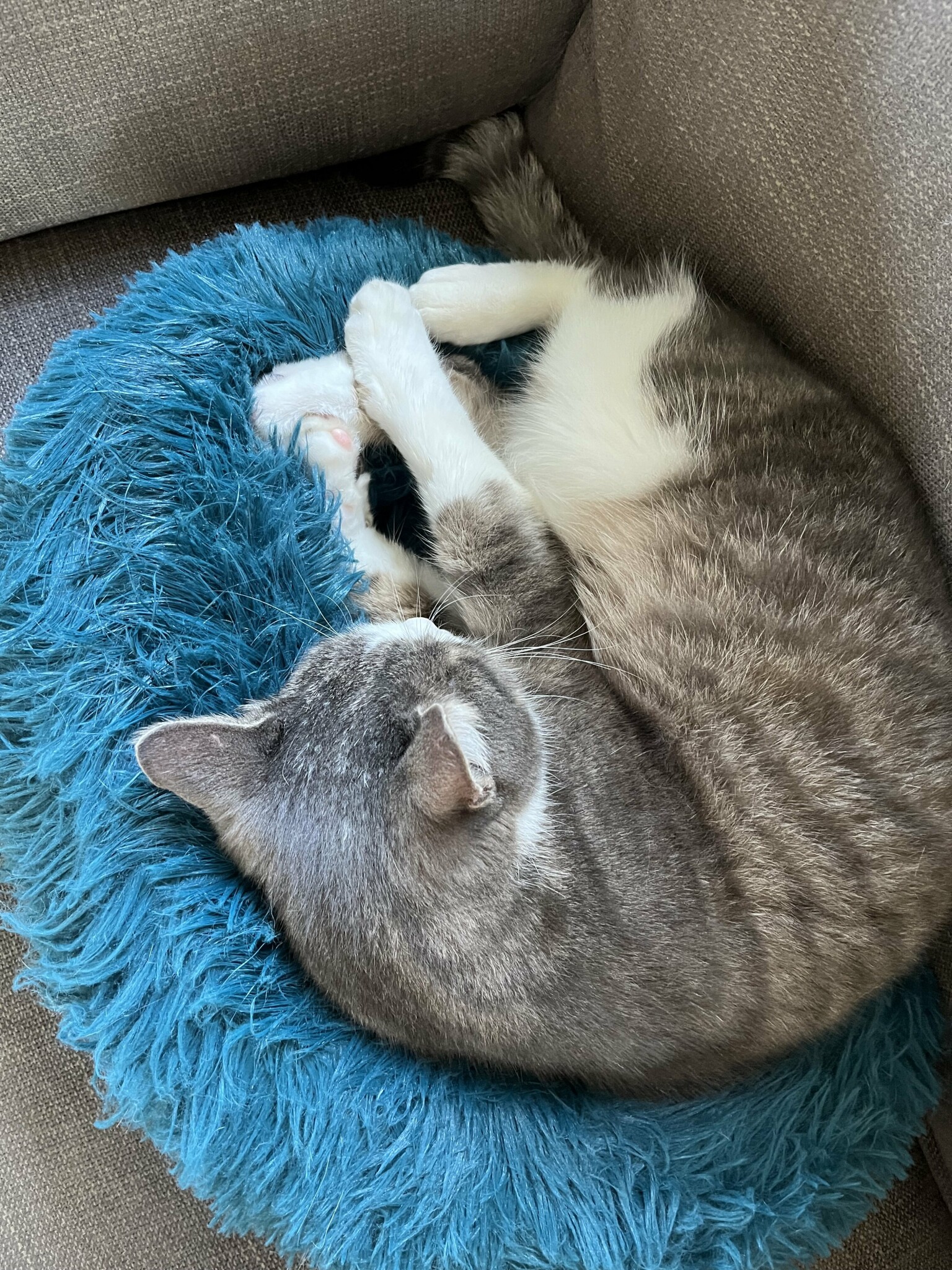 Bägge innekatter, Belvedere vill gå ut under sommaren för att käka gräsmatta och stirra på humlor. Bean nöjer sig med att ligga på fönsterbrädan och långkokas.