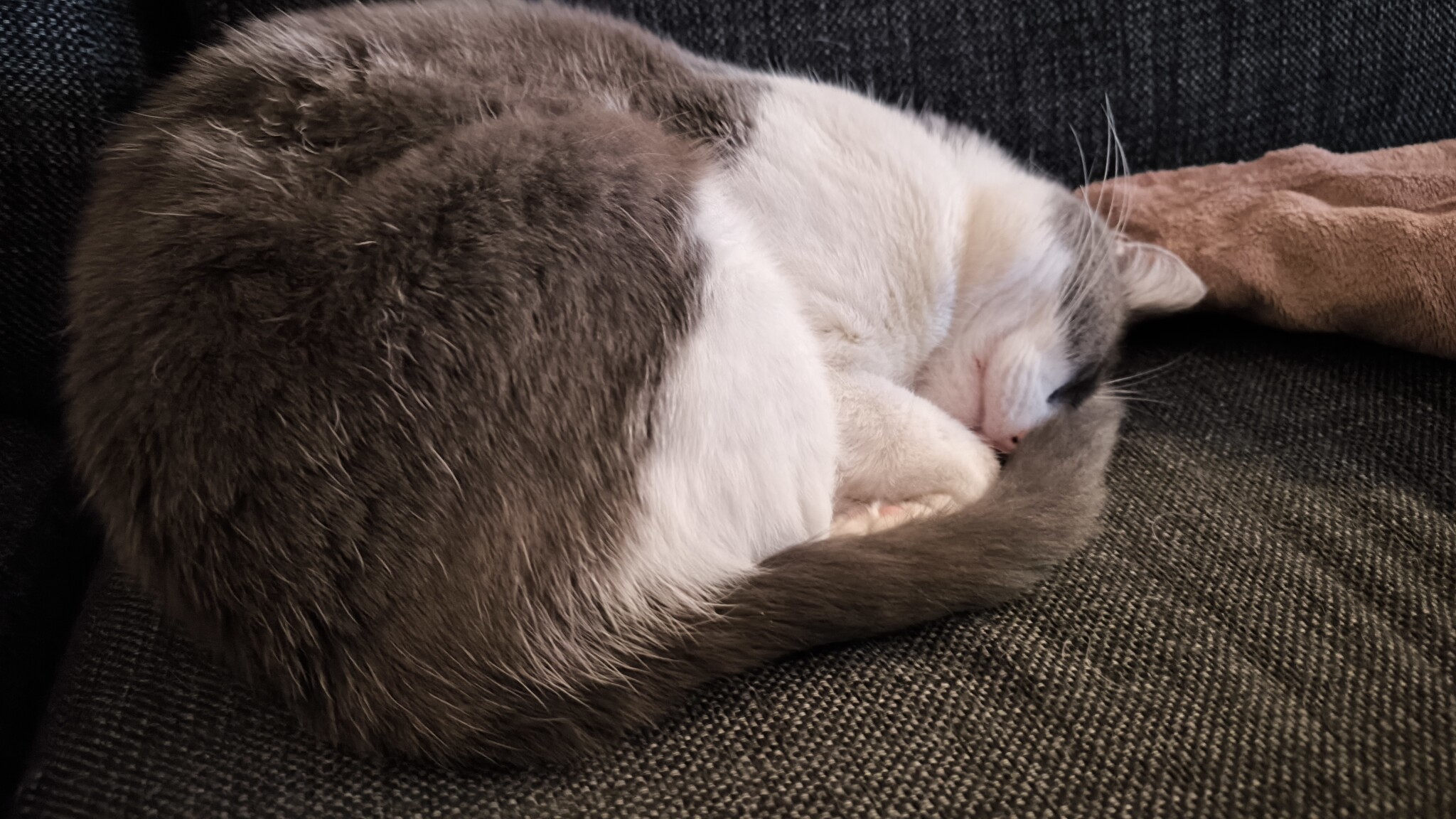 Får han för lite.. lägger han sig med tassarna mot/på mig.. och så ligger han som på bilden..