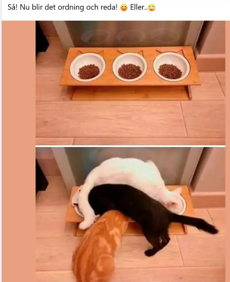 VÄra nuvarande katter Àr lite extra. Jag har brukat sÀga att en stor skillnad mellan katt och hund Àr att katter har sjÀlvbevarelsedrift medan hundar saknar den helt. Dom glömde dock installera den pÄ dom katter vi har nu. Vi har haft egna utekatter sen 2006 ungefÀr och inga av dom har vi behövt föra till veterinÀr sÄ ofta som dom vi skaffade för ca 2 Är sedan.