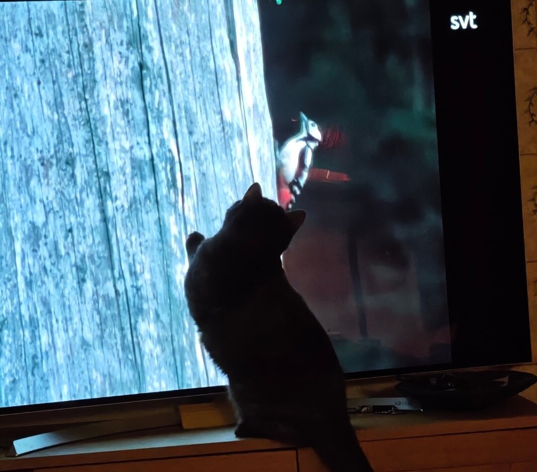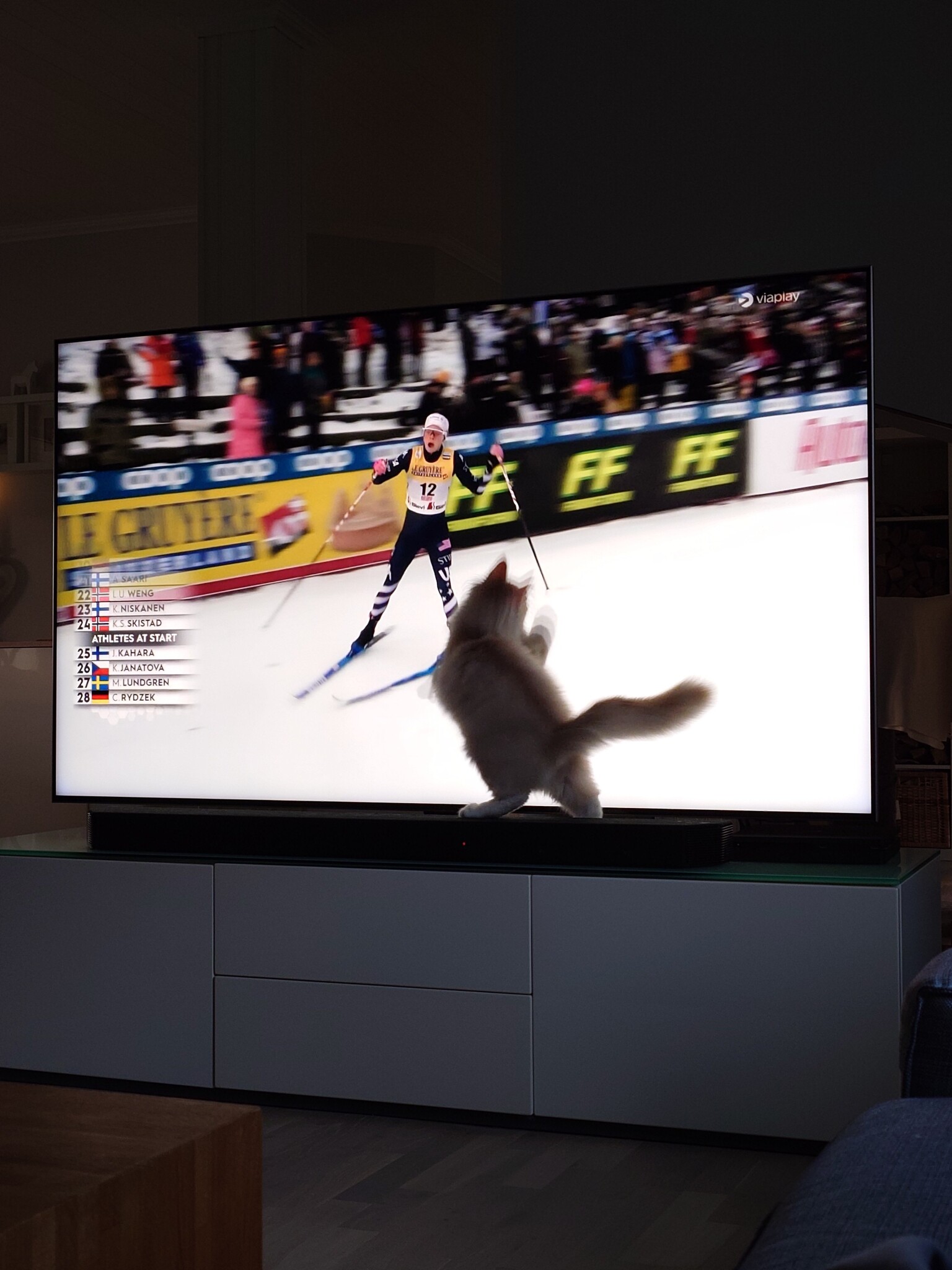 Jag hade tre katter i soffan, den här fick allihop att kasta sig mot TVn. Tur att den verkar stå stadigt!FredrikR skrev: